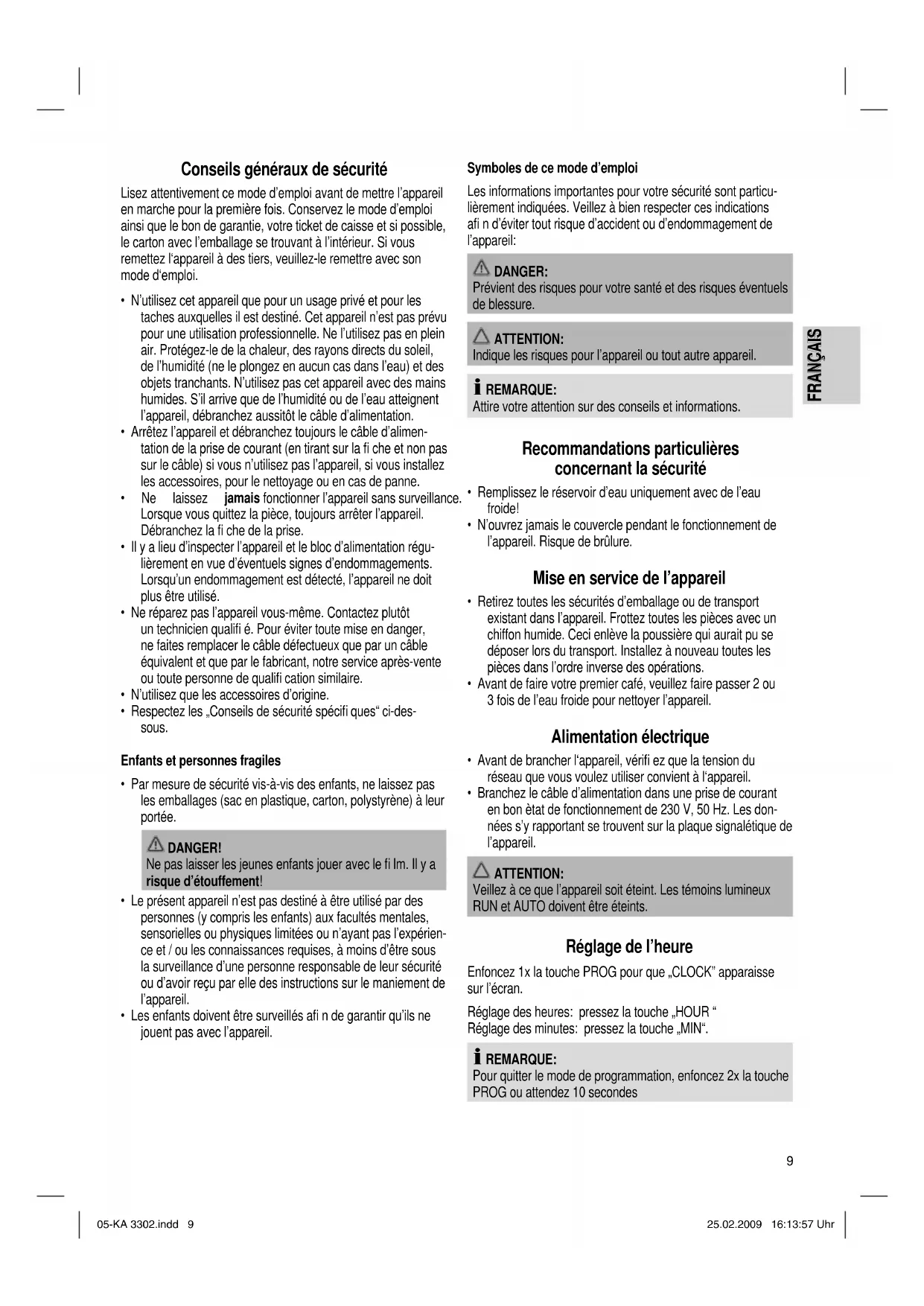 MODE D'EMPLOI KA 3302 CLATRONIC