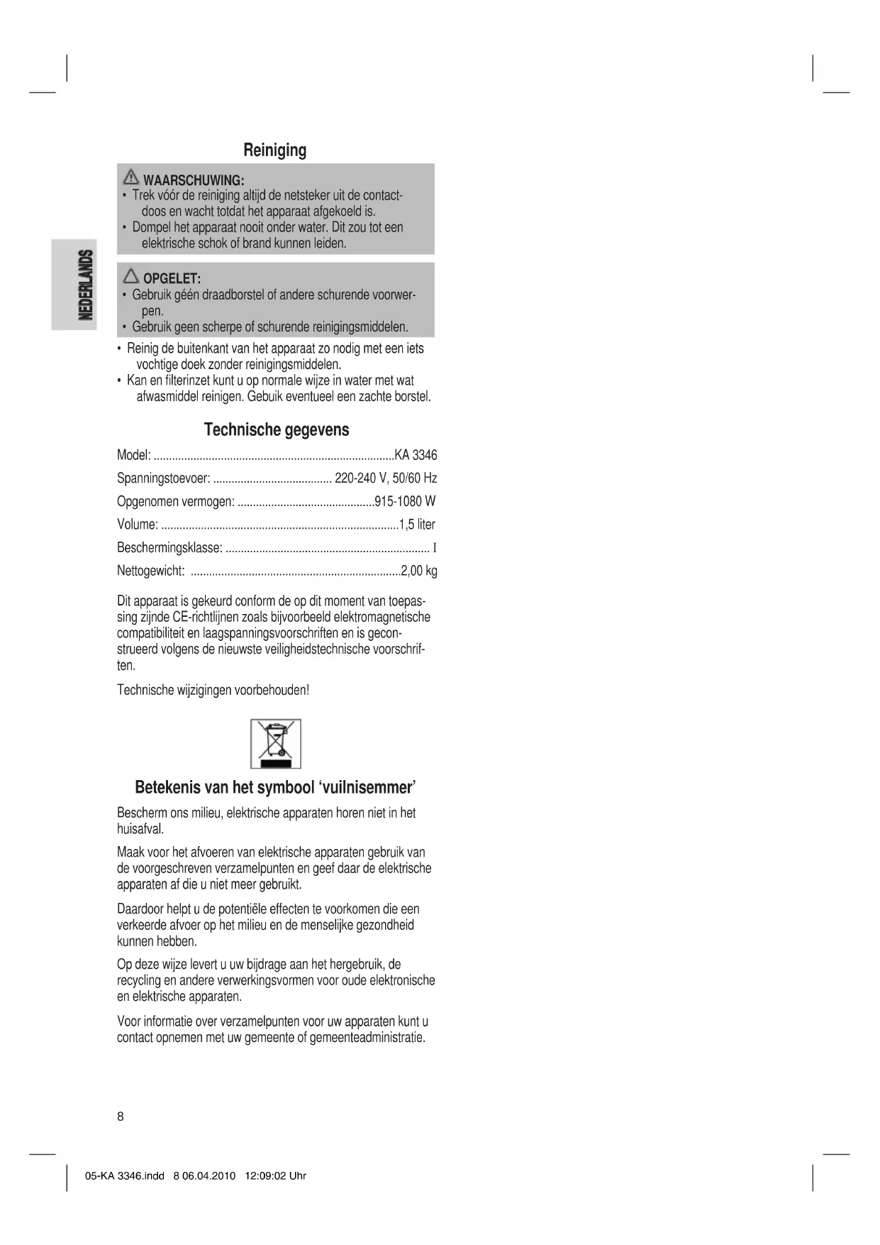 Retrouvez gratuitement la notice de l'appareil KA 3346 CLATRONIC au format PDF.