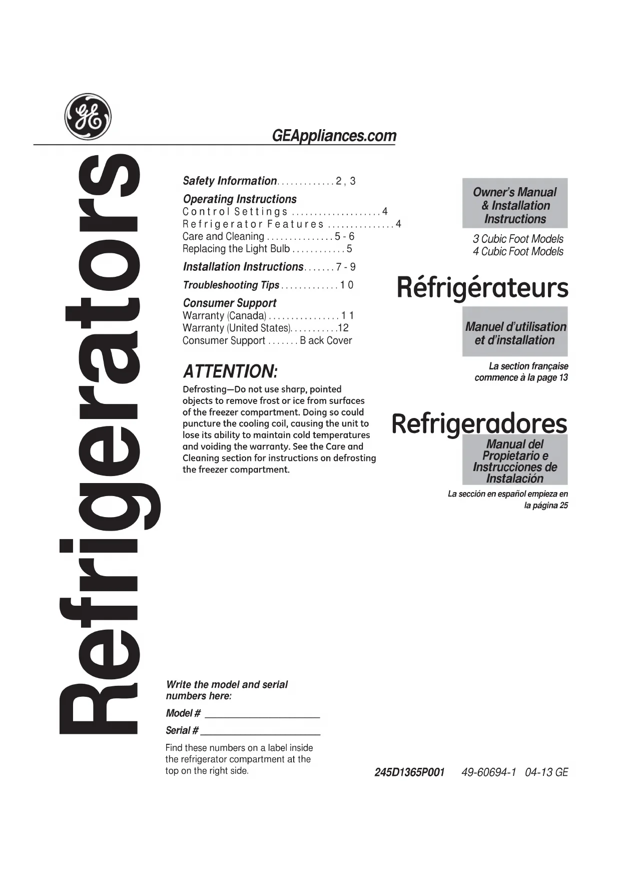 GME04GGHBB - Réfrigérateur GE - Notice d'utilisation et mode d'emploi gratuit
