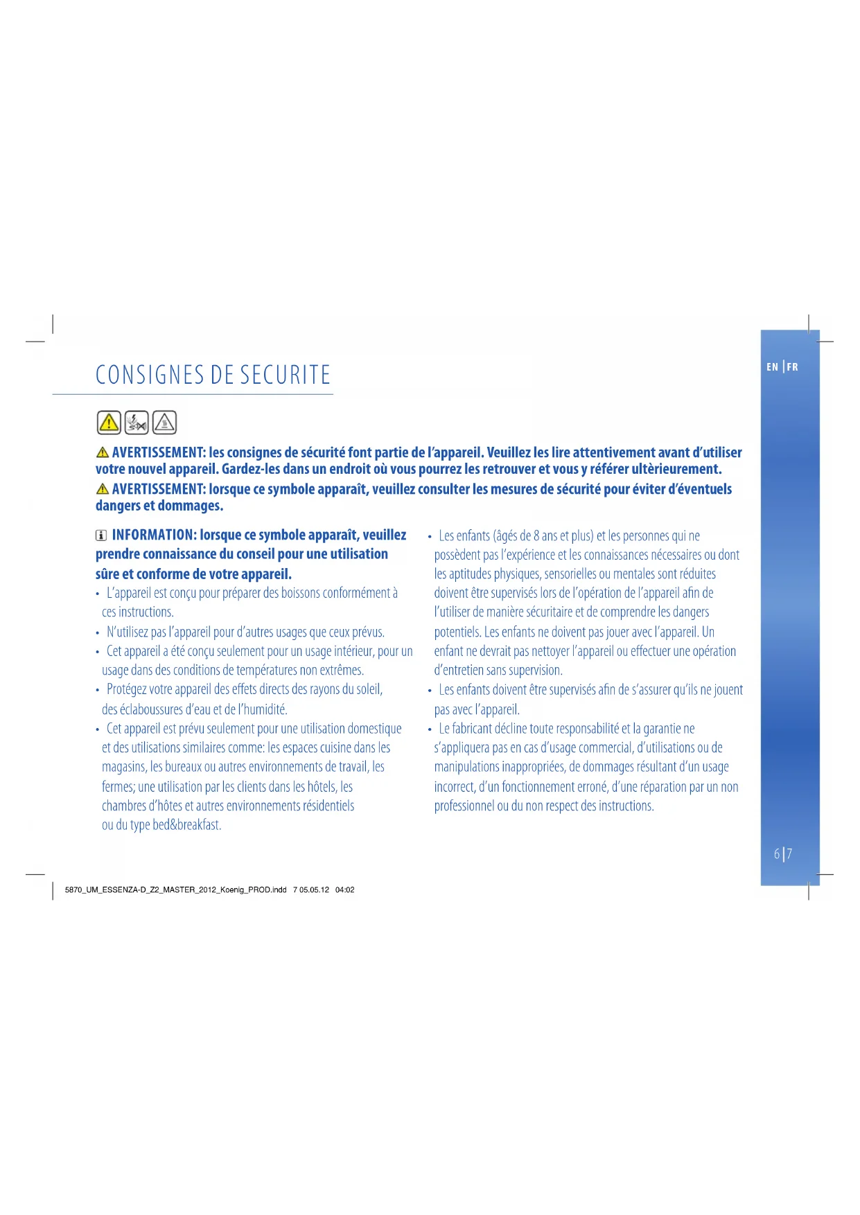 5870_UM_ESSENZA-D_Z2_MASTER_2012_Koenig_PROD.indd 7 05.05.12 04:02Evitez les risques d’incendie et de choc électrique fatal