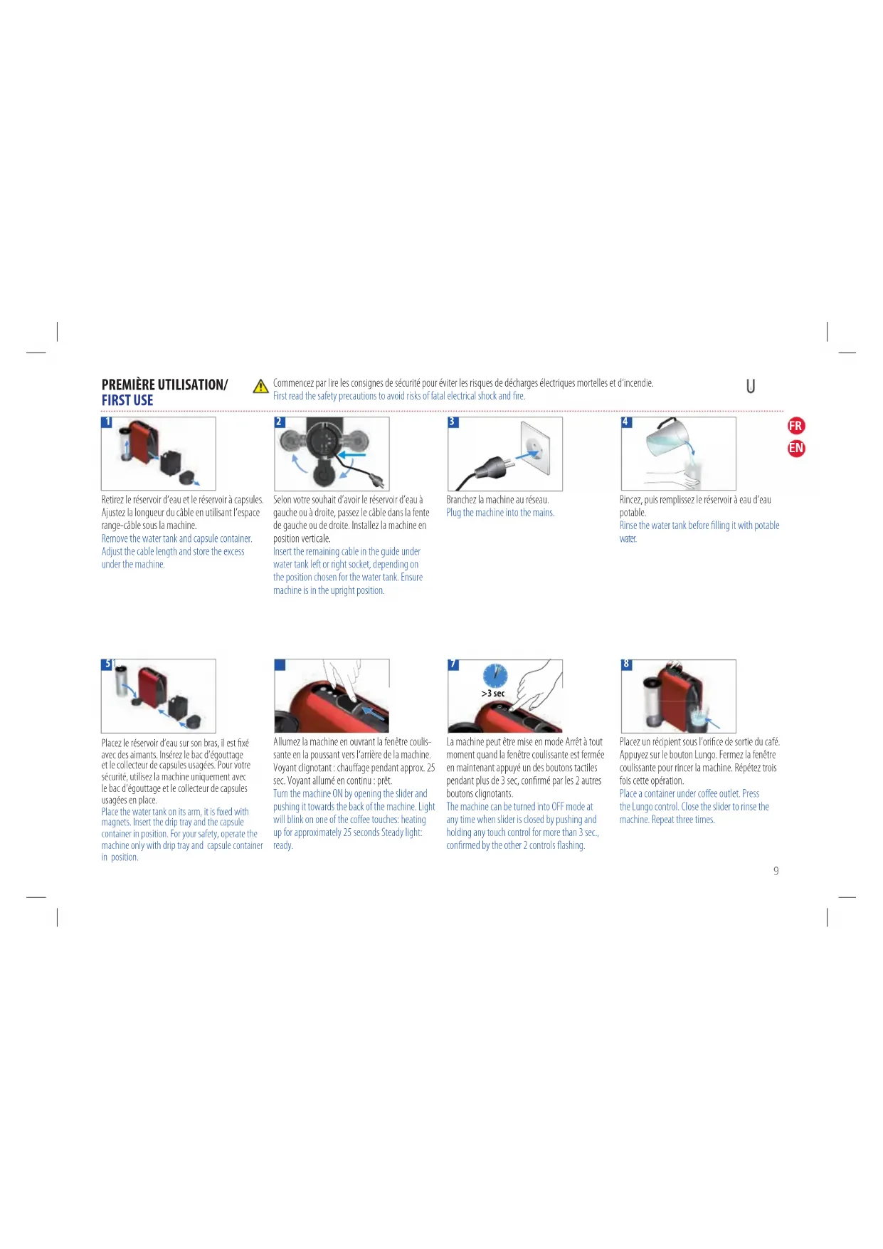 Pour économiser de l’énergie, la machine passe sur le mode Arrêt après 9 minutes de non-utilisation.