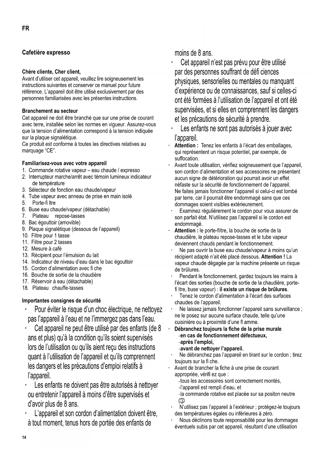 fi ltre, buse vapeur) : il existe un risque de brûlures.