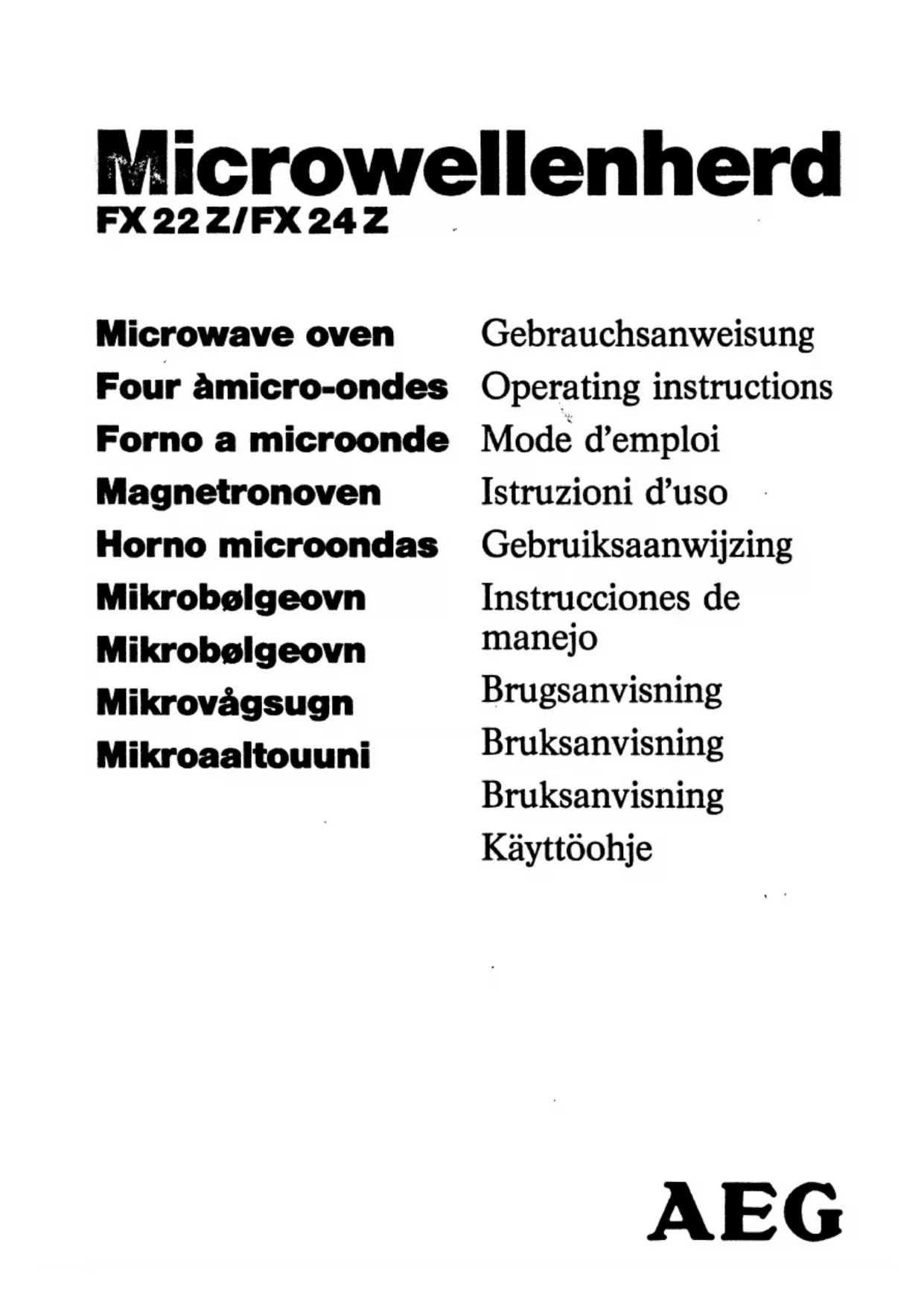 FX24Z - Four à micro-ondes AEG - Notice d'utilisation et mode d'emploi gratuit