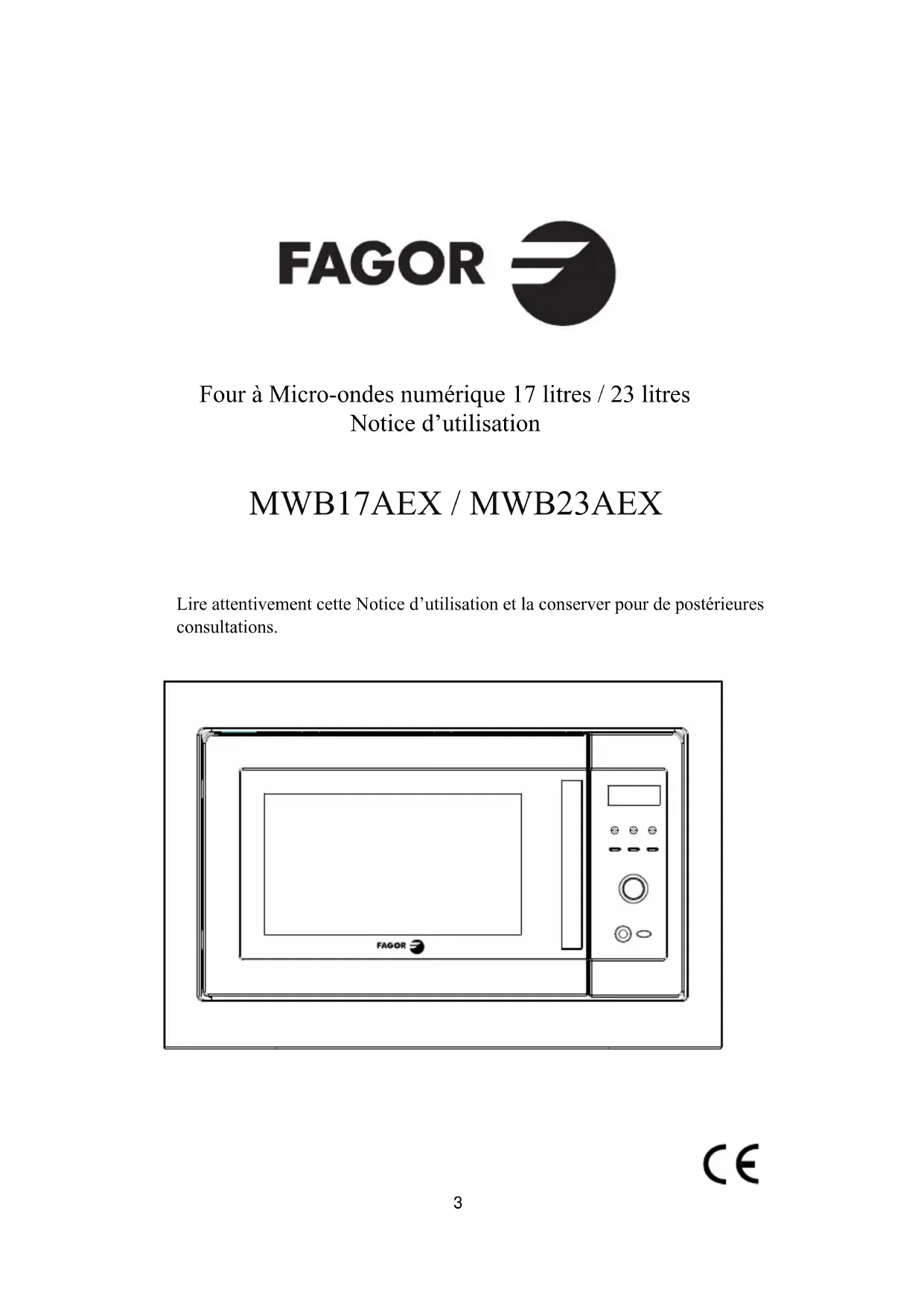 MWB23AEX - Four à micro-ondes FAGOR - Notice d'utilisation et mode d'emploi gratuit