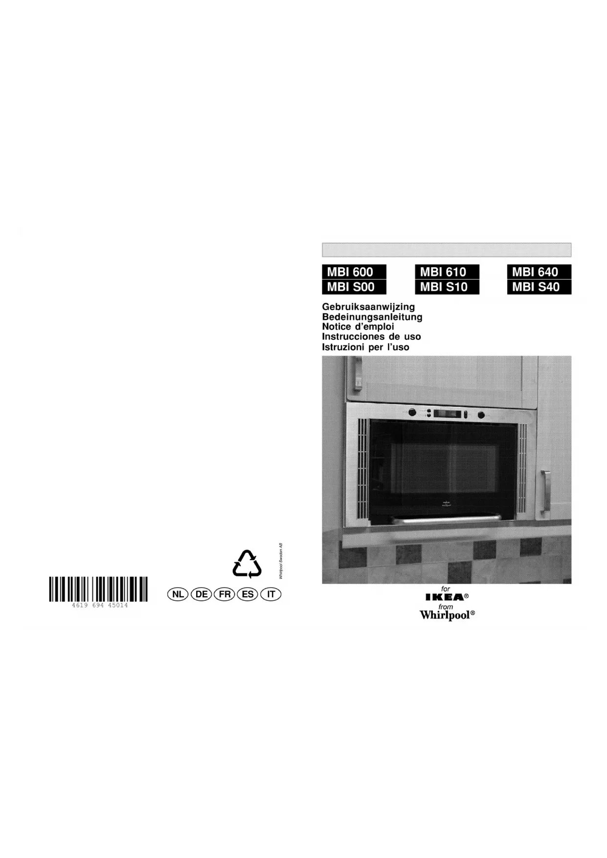 MBI S10 - Four à micro-ondes WHIRLPOOL - Notice d'utilisation et mode d'emploi gratuit