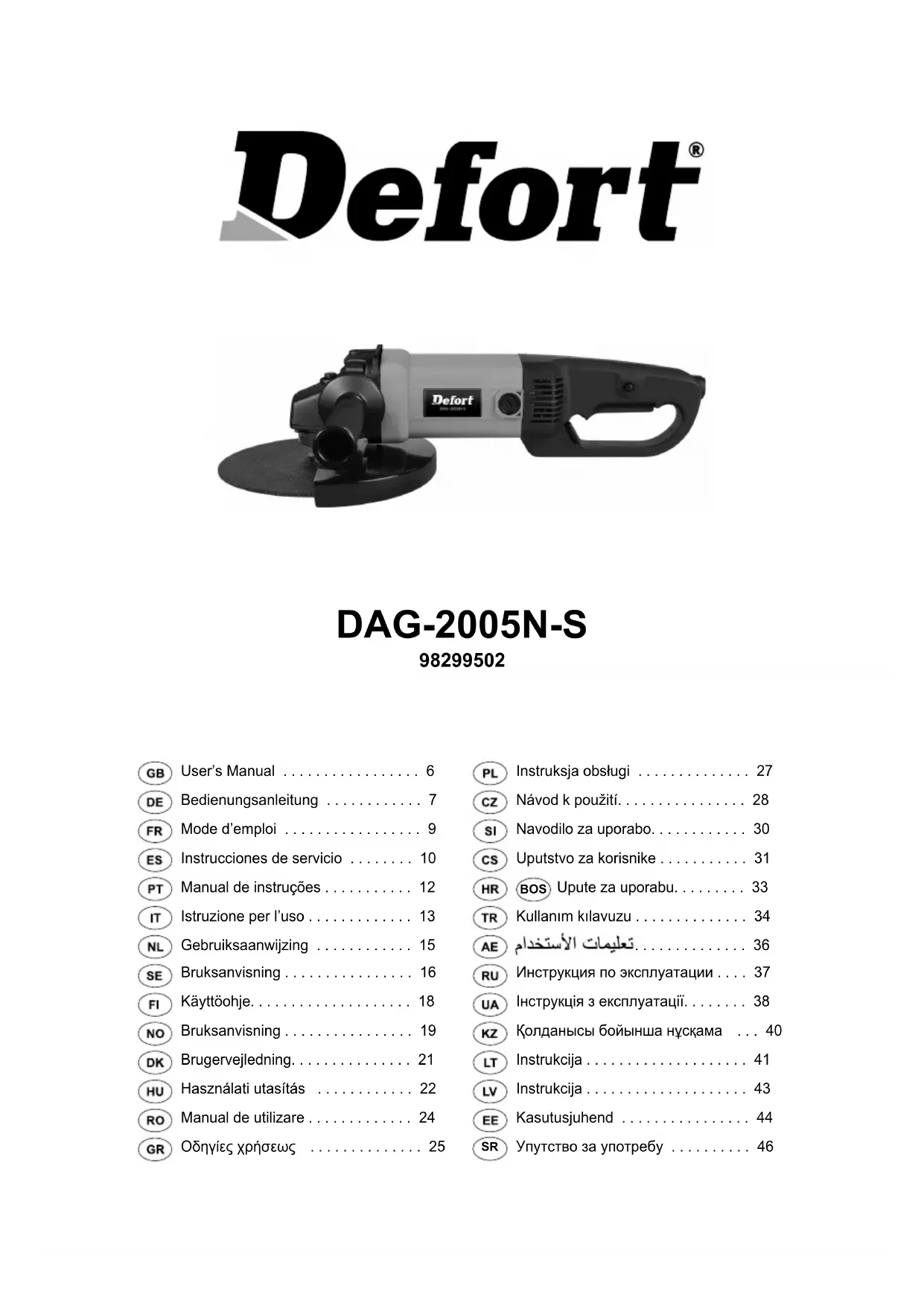 MODE D'EMPLOI DAG2005NS Defort