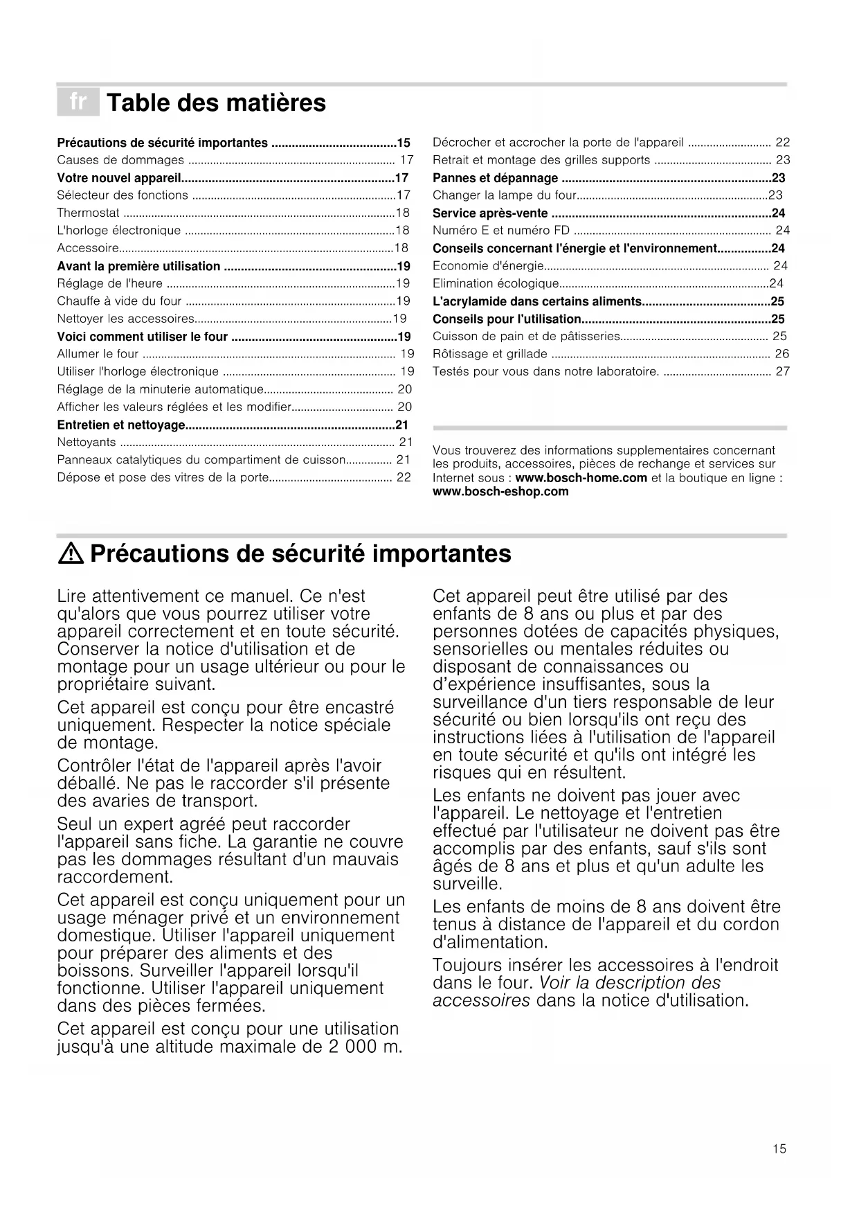 Þ Table des matières [fr]Notice d’utilisation Précautions de sécurité importantes 15