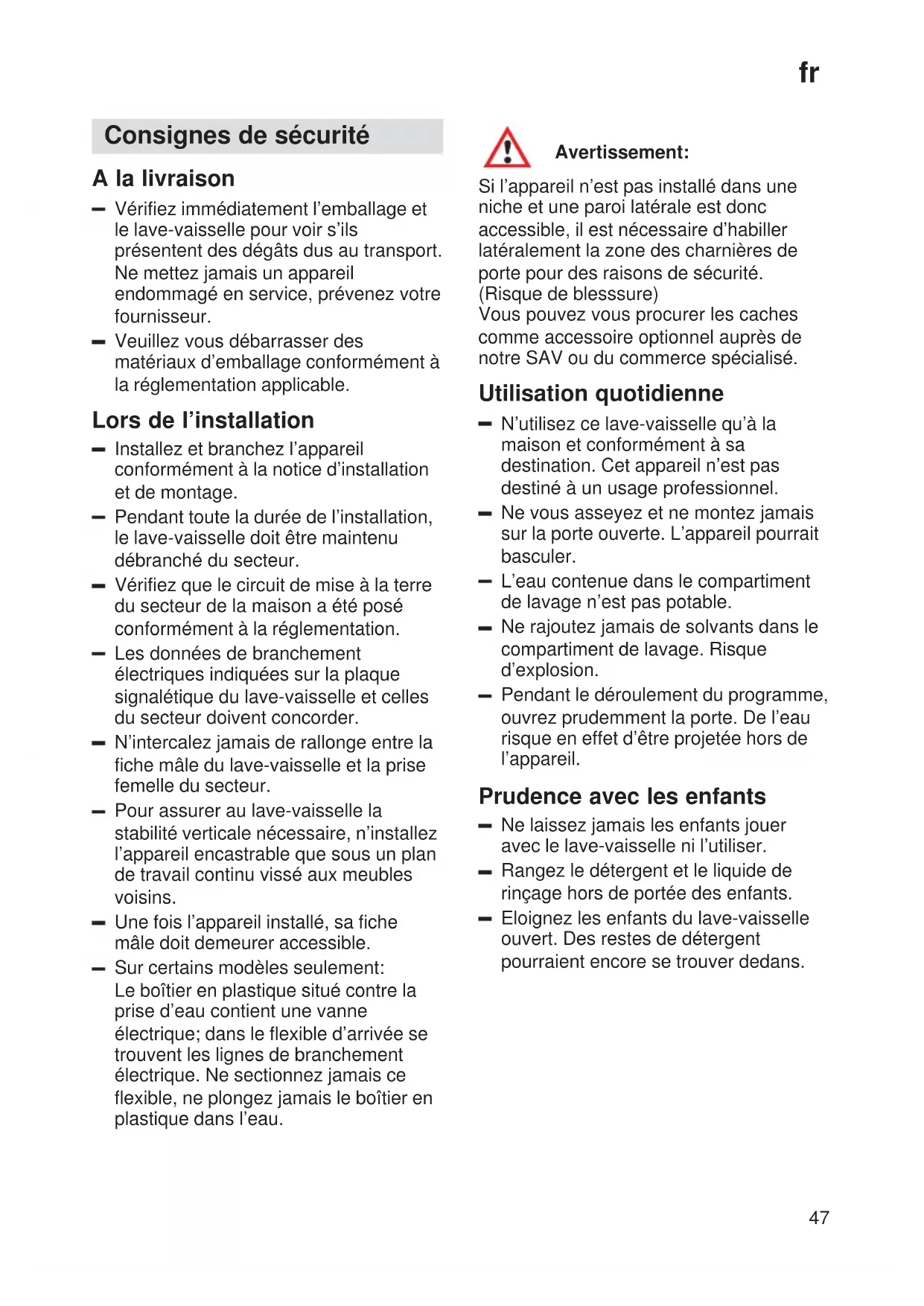 Consignes de sécurité 47. . . . . .