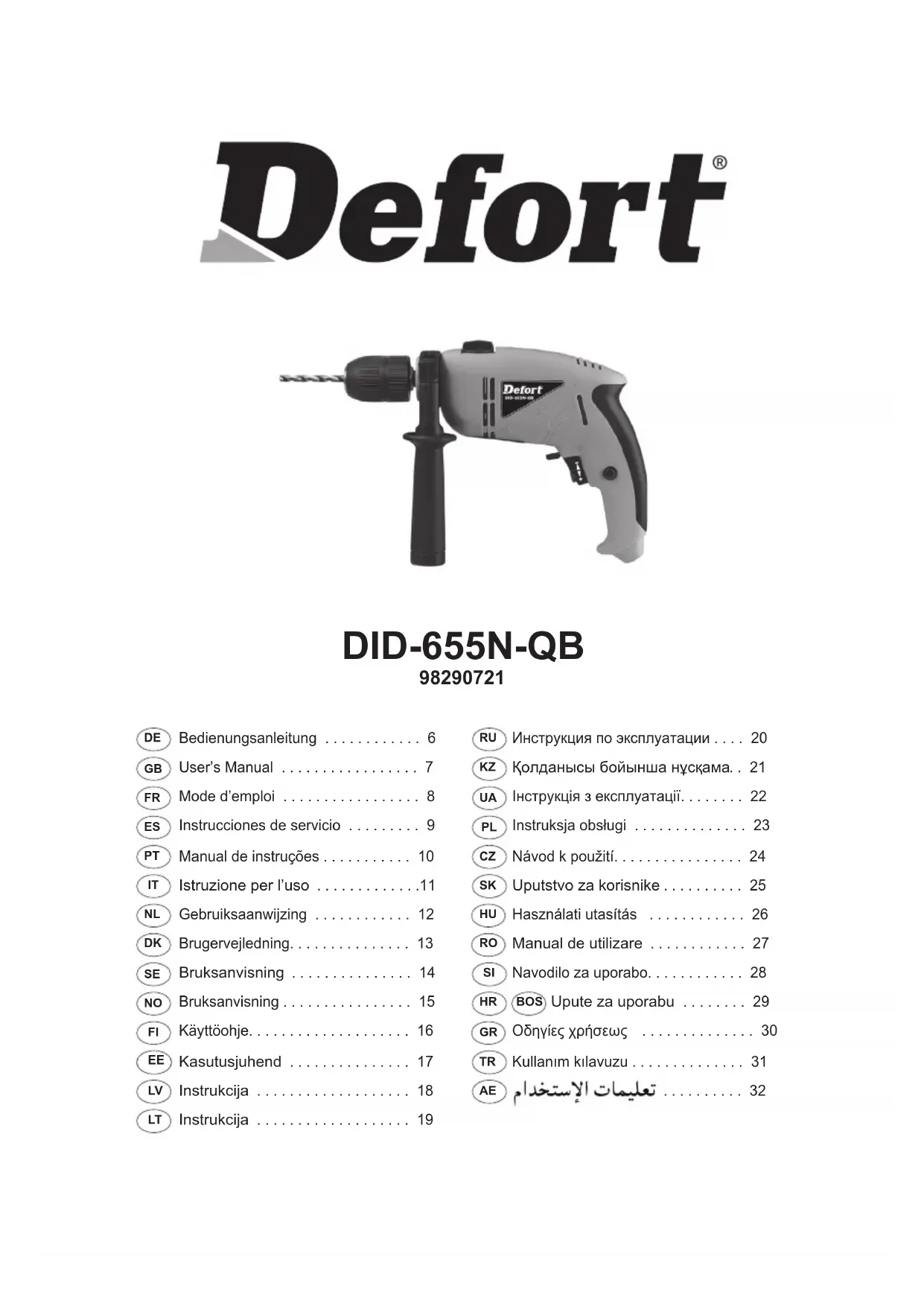 Téléchargez la notice de votre Perceuse au format PDF gratuitement ! Retrouvez votre notice DID655NQB - Defort et reprennez votre appareil électronique en main. Sur cette page sont publiés tous les documents nécessaires à l'utilisation de votre appareil DID655NQB de la marque Defort.