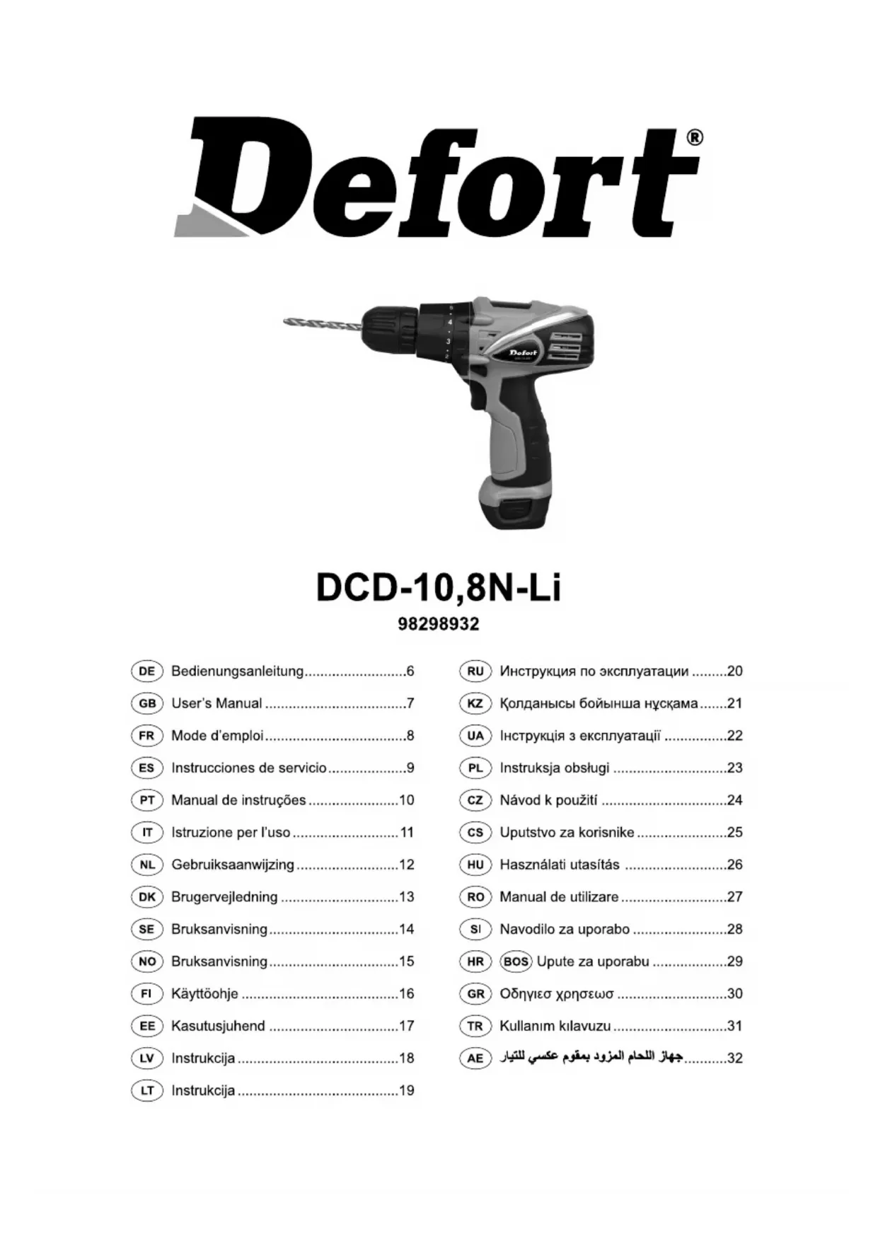 DCD10 - Perceuse Defort - Notice d'utilisation et mode d'emploi gratuit