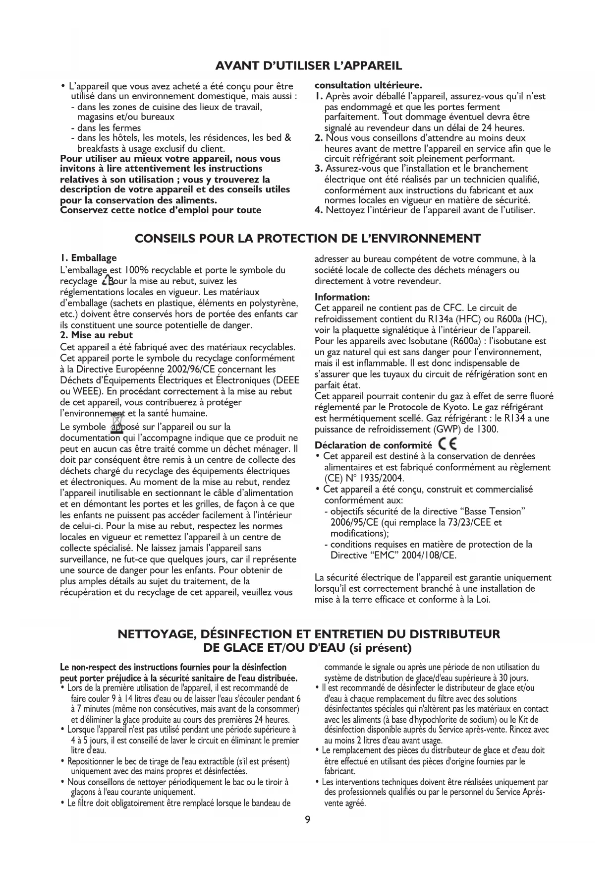 NETTOYAGE, DÉSINFECTION ET ENTRETIEN DU DISTRIBUTEUR DE GLACE ET/OU D'EAU (si présent)10