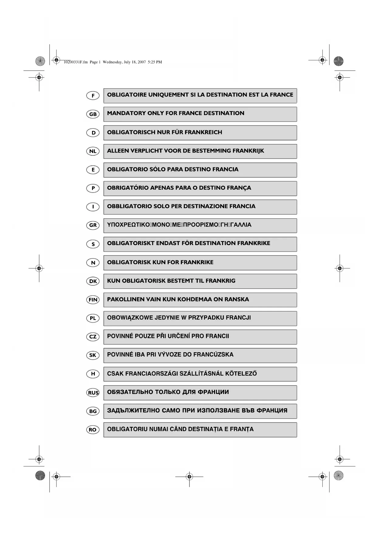 10200331F.fm Page 3 Wednesday, July 18, 2007 5:25 PMRESPECT DES REGLES D’HYGIENE ALIMENTAIRE