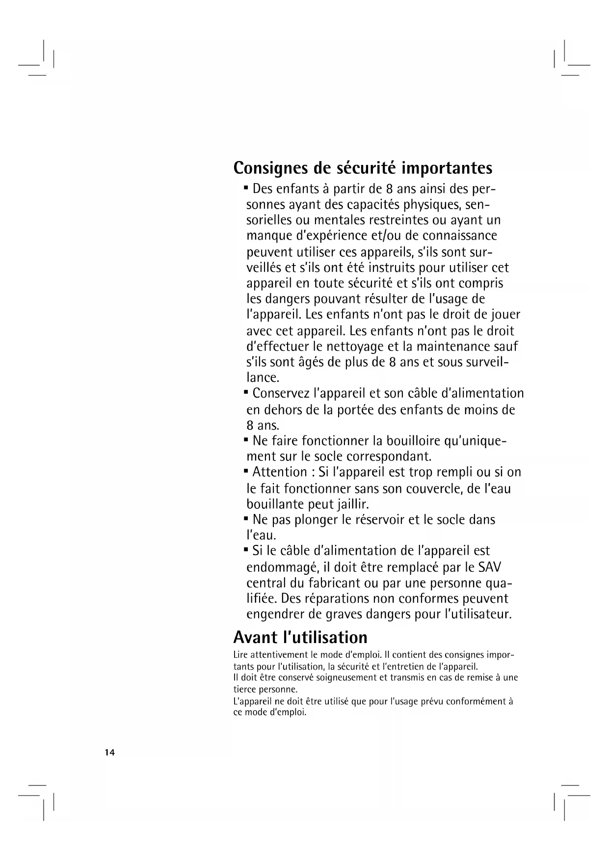 ▪ Ne faire fonctionner la bouilloire qu’unique-