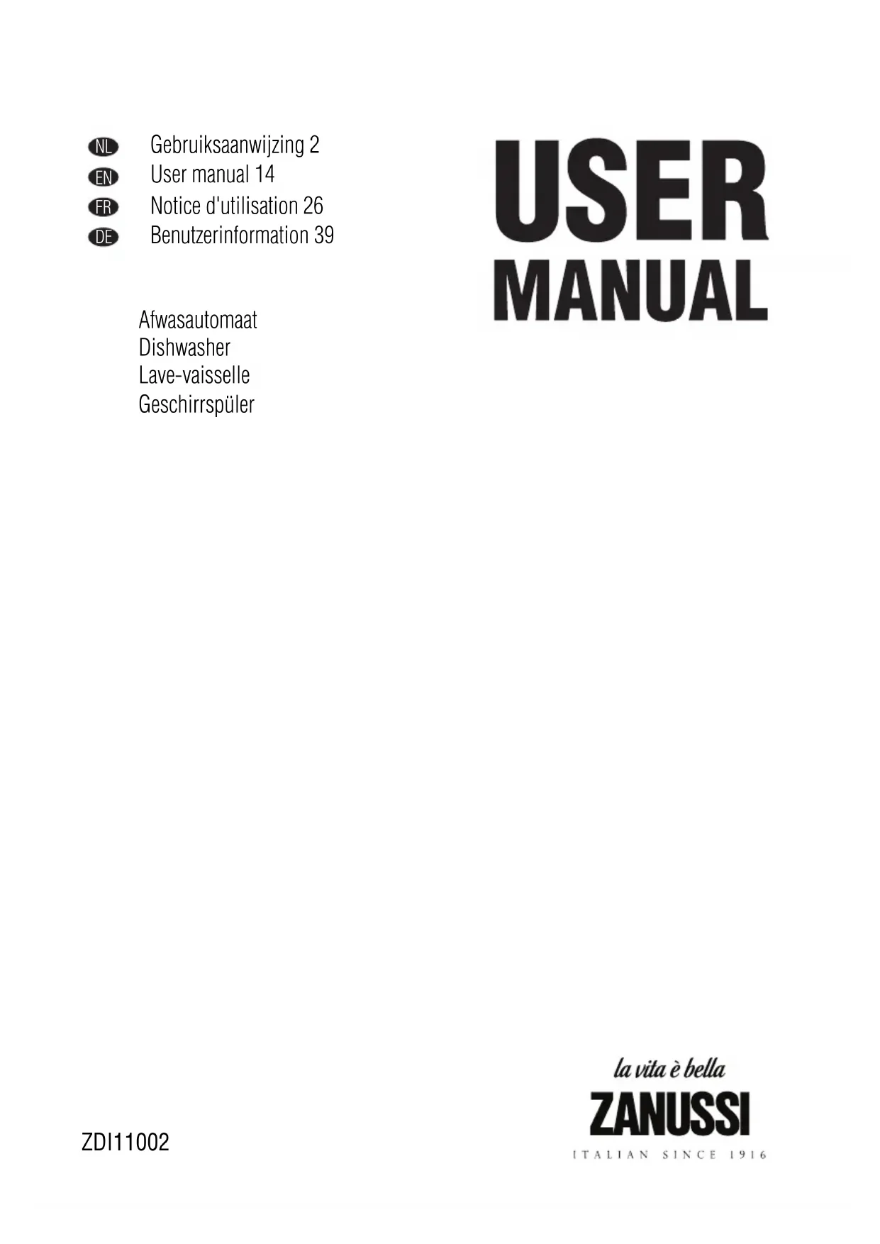 ZDI11002XA - Lave-vaisselle ZANUSSI - Notice d'utilisation et mode d'emploi gratuit