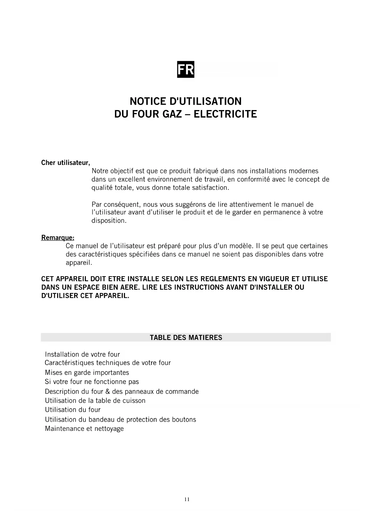 Cher utilisateur, Notre objectif est que ce produit fabriqué dans nos installations modernes dans un excellent environnement de travail, en conformité avec le concept de qualité totale, vous donne totale satisfaction. Par conséquent, nous vous suggérons de lire attentivement le manuel de l’utilisateur avant d’utiliser le produit et de le garder en permanence à votre disposition. Remarque: Ce manuel de l’utilisateur est préparé pour plus d’un modèle. Il se peut que certaines des caractéristiques spécifiées dans ce manuel ne soient pas disponibles dans votre appareil. CET APPAREIL DOIT ETRE INSTALLE SELON LES REGLEMENTS EN VIGUEUR ET UTILISE DANS UN ESPACE BIEN AERE. LIRE LES INSTRUCTIONS AVANT D'INSTALLER OU D'UTILISER CET APPAREIL.