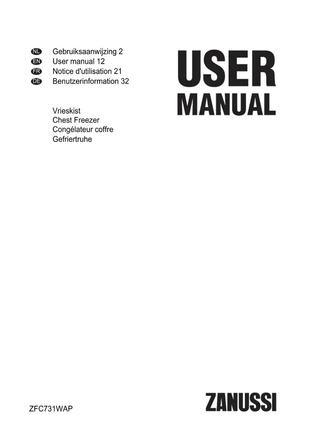 ZFC731WAP - Congélateur ZANUSSI - Notice d'utilisation et mode d'emploi gratuit