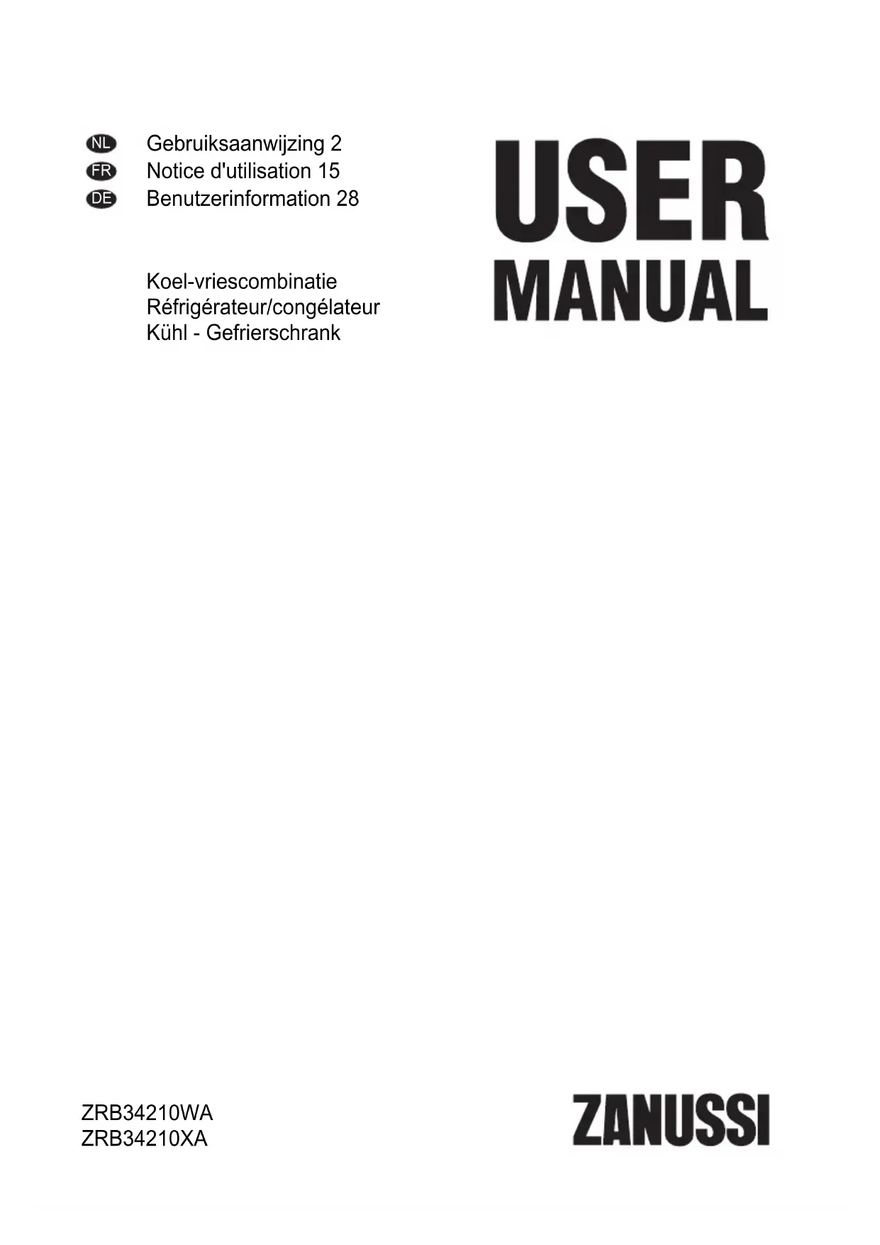 ZRB34210XA - Réfrigérateur ZANUSSI - Notice d'utilisation et mode d'emploi gratuit