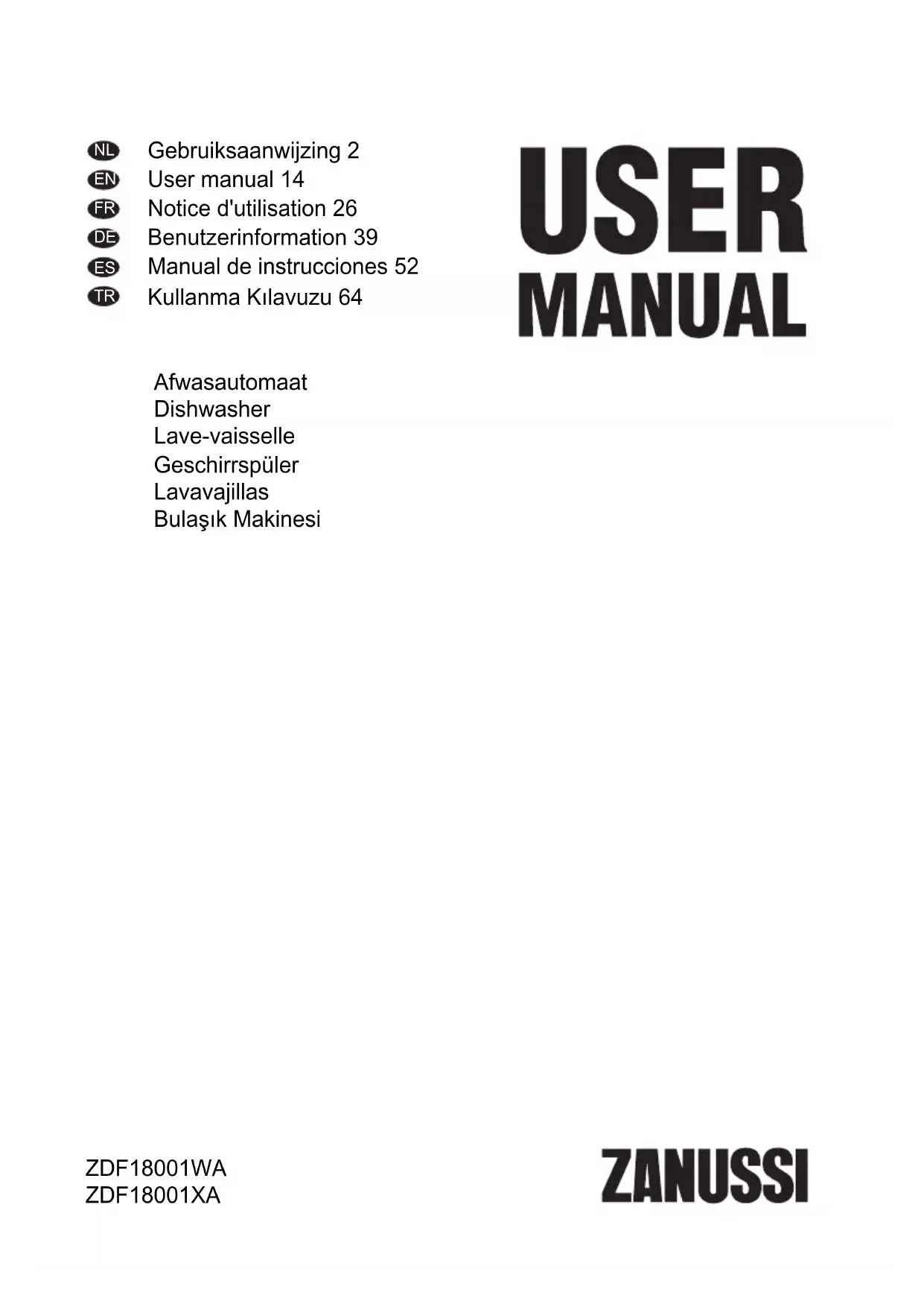 ZDF18001WA - Lave-vaisselle ZANUSSI - Notice d'utilisation et mode d'emploi gratuit