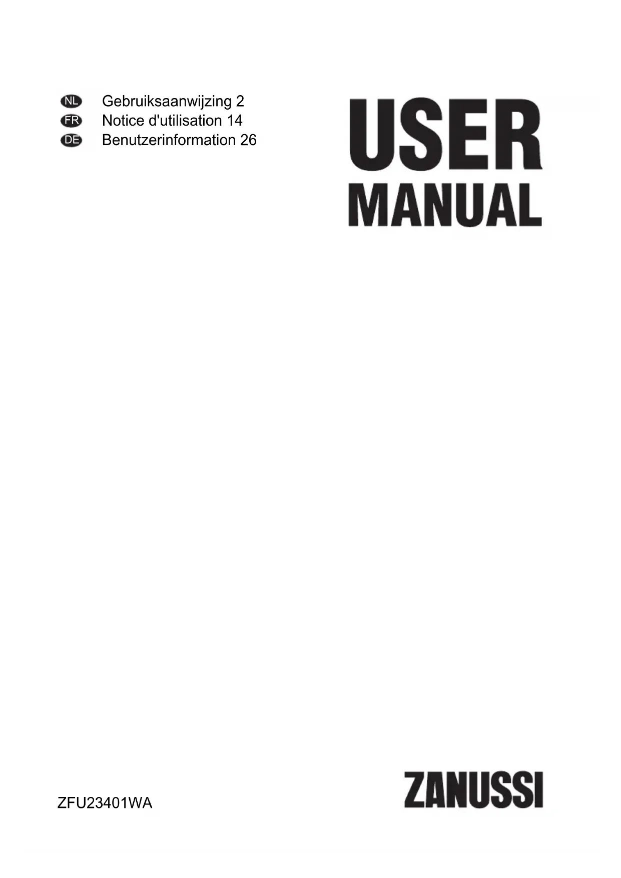 Retrouvez gratuitement la notice de l'appareil ZFU23401WA ZANUSSI au format PDF.