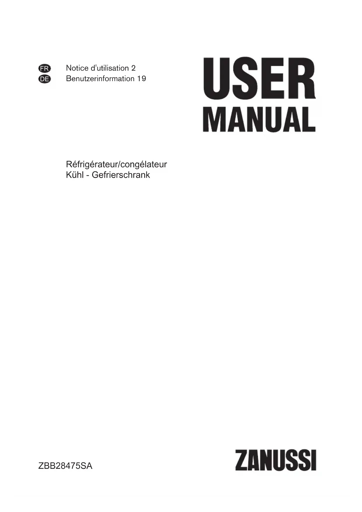 ZBB28475SA - Réfrigérateur ZANUSSI - Notice d'utilisation et mode d'emploi gratuit