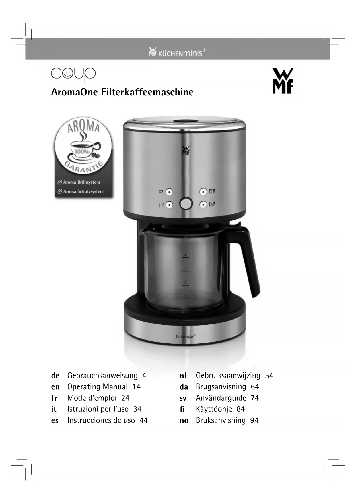 Retrouvez gratuitement la notice de l'appareil Coup AromaOne WMF au format PDF.