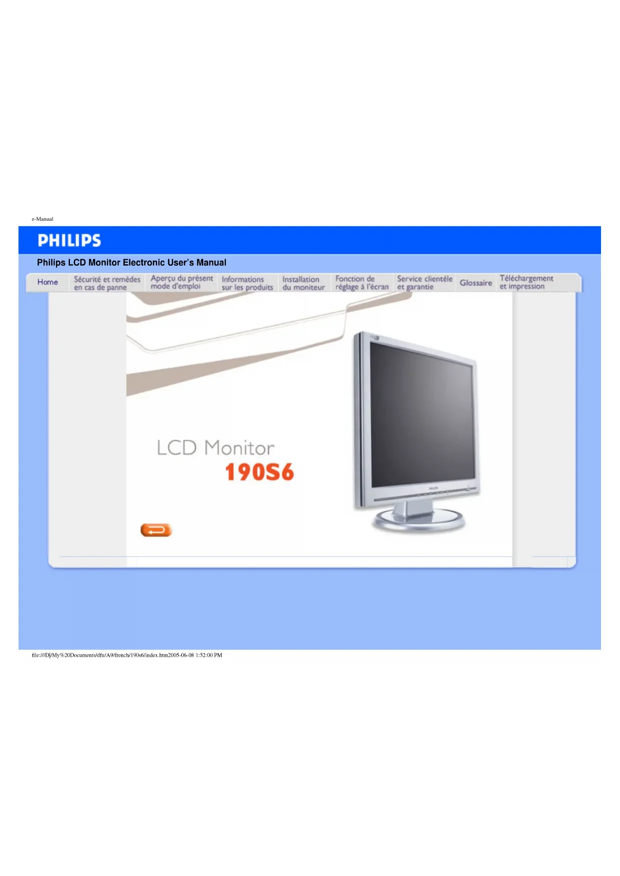 Retrouvez gratuitement la notice de l'appareil 190S6FB PHILIPS au format PDF.