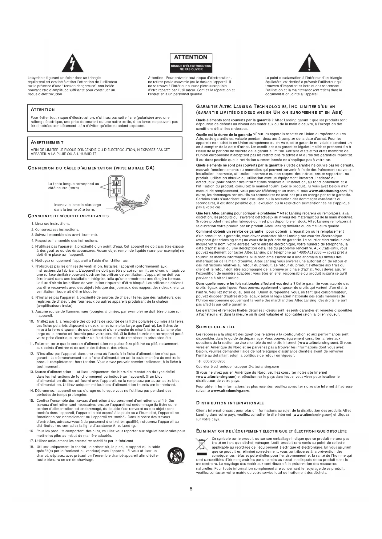 el: 800-258-3288 Courrier électronique : csupport@alteclansing.com Si vous ne vivez pas en Amérique du Nord, veuillez consulter notre site Internet