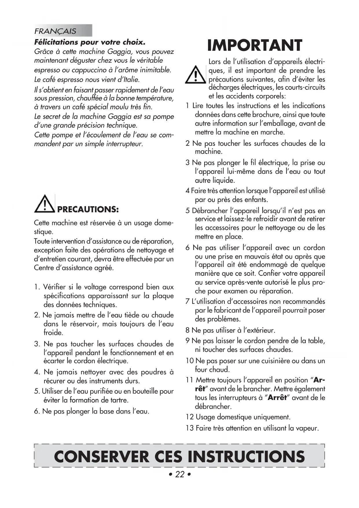 New Baby Twin - Machine à café GAGGIA - Notice d'utilisation et mode d'emploi gratuit
