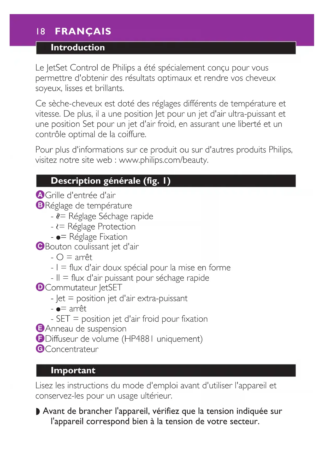 MODE D'EMPLOI JetSet Control HP4880 PHILIPS