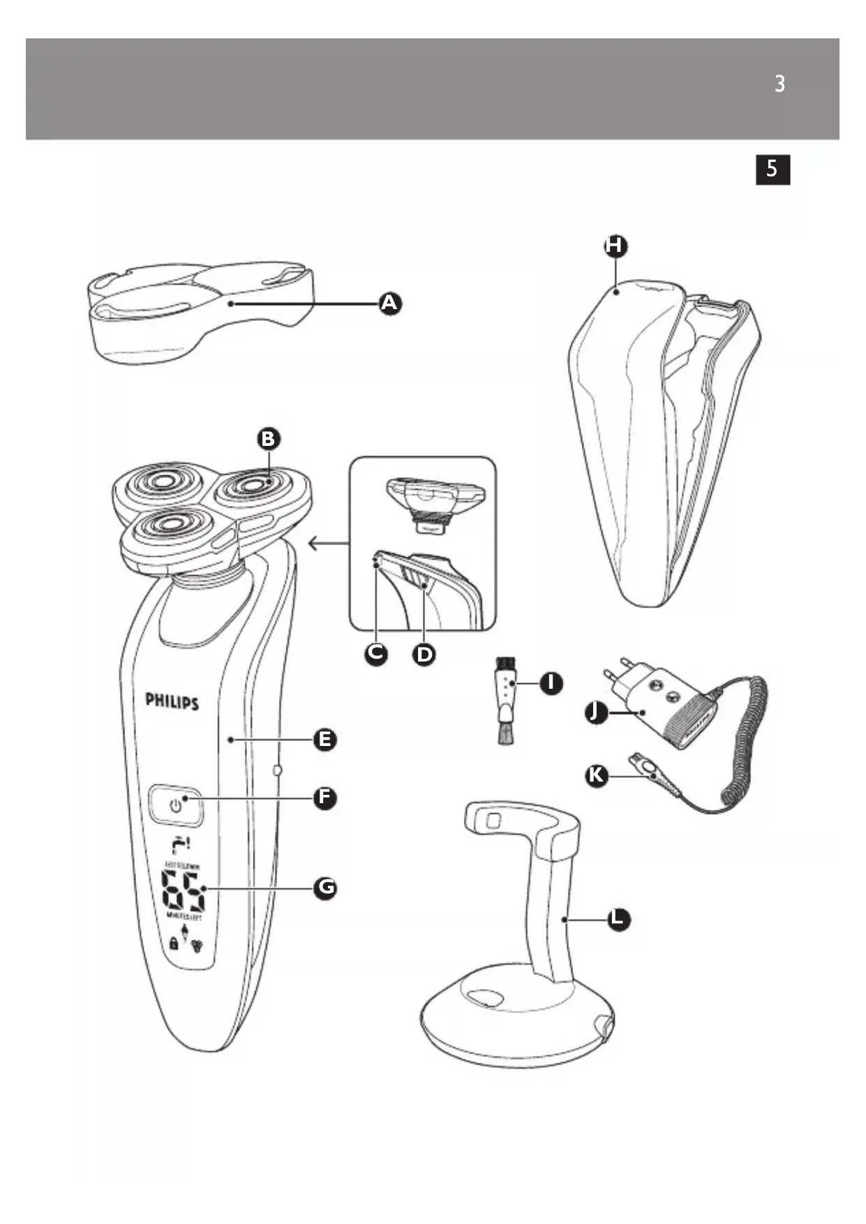 F Bouton marche/arrêt du rasoir