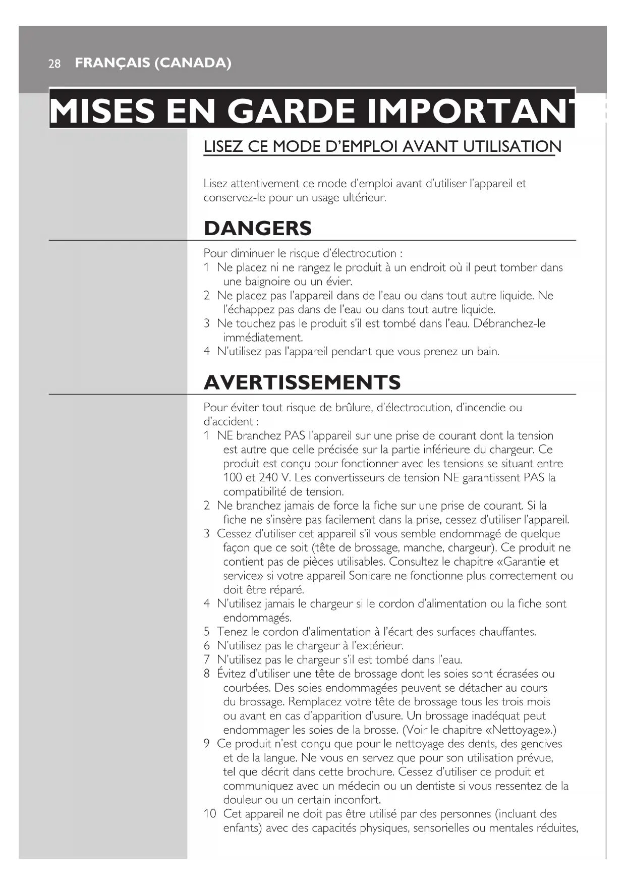 CONSERVEZ CES INSTRUCTIONS FrançaiS (Canada) 29Votre brosse à dents Sonicare (g. 1)