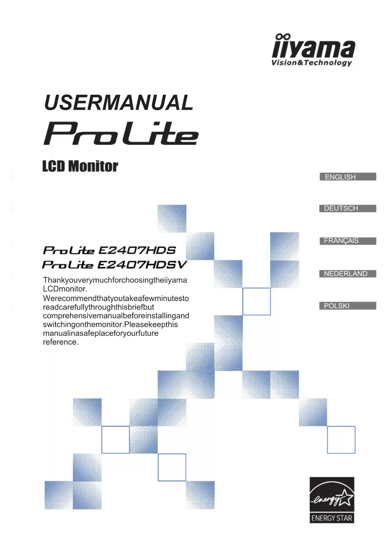 ProLite E2407HDSV - Moniteur IIYAMA - Notice d'utilisation et mode d'emploi gratuit