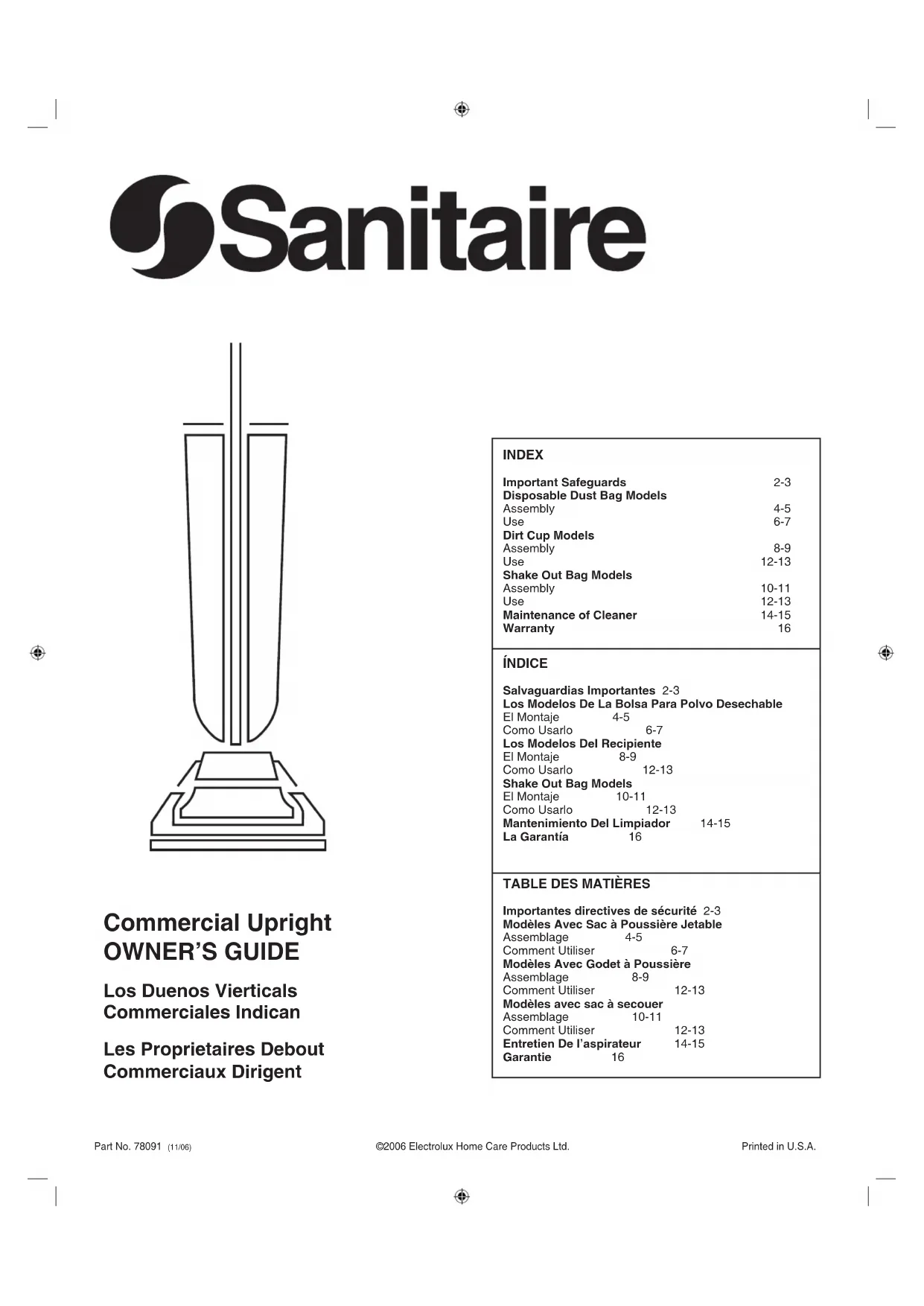 FRANCAIS GARANTIE LIMITÉE POUR ASPIRATEUR COMMERCIAL SANITAIRE Votre aspirateur commercial Sanitaire est garanti