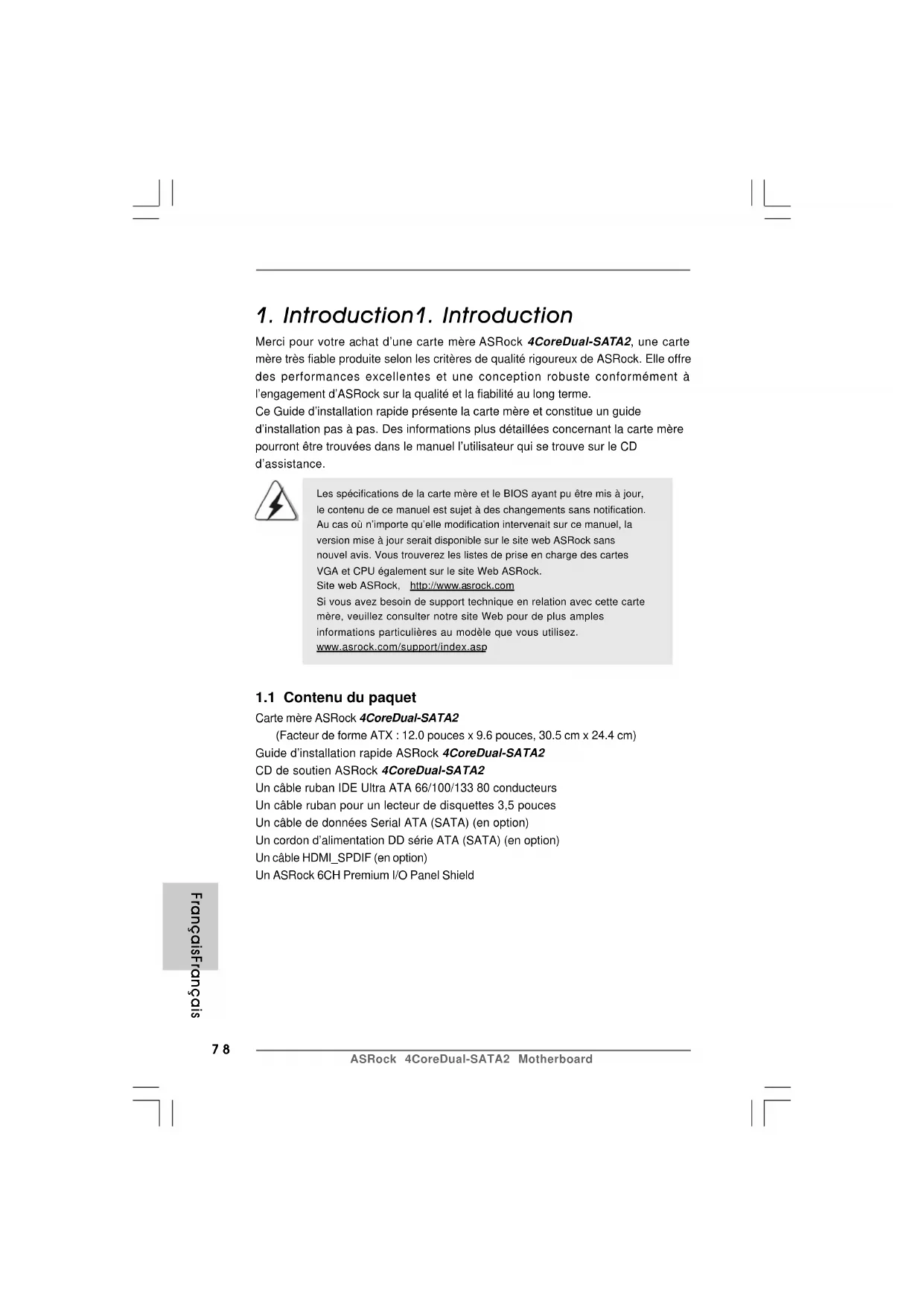 Guide d’installation rapide ASRock 4CoreDual-SATA2