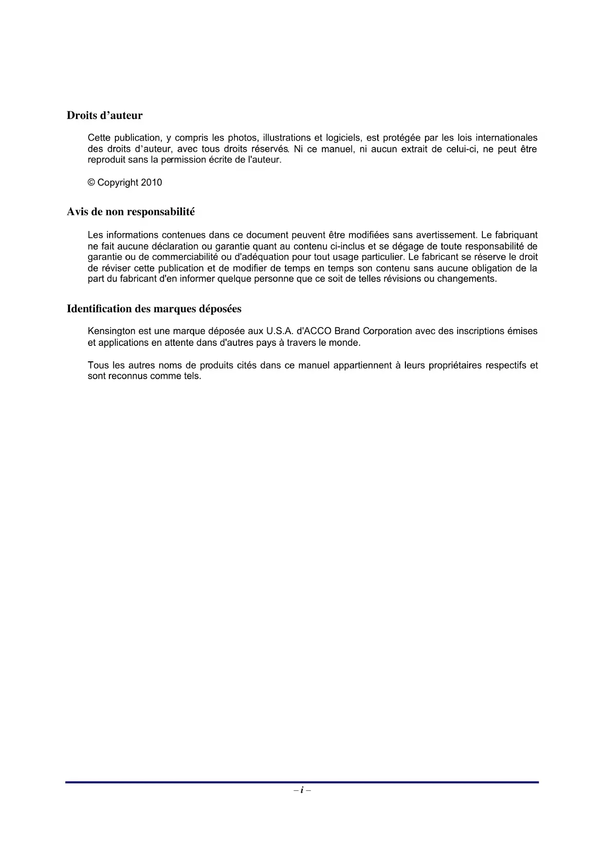 D8 Series– i – Dro . Ni ce manuel, ni aucun extrait de celui-ci, ne peut être rmission écrite de l'auteur. © Copyright 2010 Avi on de la part du fabricant d'en informer quelque personne que ce soit de telles révisions ou changements. Iden orporation avec des inscriptions émises oduits cités dans ce manuel appartiennent à leurs propriétaires respectifs et sont reconnus comme tels. its d’auteur Cette publication, y compris les photos, illustrations et logiciels, est protégée par les lois internationales des droits d’auteur, avec tous droits réservés reproduit sans la pe s de non responsabilité Les informations contenues dans ce document peuvent être modifiées sans avertissement. Le fabriquant ne fait aucune déclaration ou garantie quant au contenu ci-inclus et se dégage de toute responsabilité de garantie ou de commerciabilité ou d'adéquation pour tout usage particulier. Le fabricant se réserve le droit de réviser cette publication et de modifier de temps en temps son contenu sans aucune obligati tification des marques déposées Kensington est une marque déposée aux U.S.A. d'ACCO Brand C et applications en attente dans d'autres pays à travers le monde. Tous les autres noms de prProjecteur DLP – Manuel de l'utilisateur – ii – Consignes de sécurité importantes Important : Nous vous recommandons fortement de lire attentivement cette section avant d'utiliser le projecteur. Ces instructions de sécurité et d'utilisation vous permettront d'utiliser en toute sécurité votre projecteur pendant de nombreuses années. Conservez ce manuel pour pouvoir le consulter ultérieurement. Symboles utilisés Les symboles d'avertissement sont utilisés sur l'appareil et dans ce manuel pour vous mettre en garde contre les situations dangereuses. Les styles suivants sont utilisés dans ce manuel pour vous communiquer des informations importantes. Remarque : Fournit des informations supplémentaires sur le sujet. Important : Offre des informations supplémentaires qui ne doivent pas être ignorées. Attention : Vous met en garde contre les situations qui pourraient endommager l'appareil.