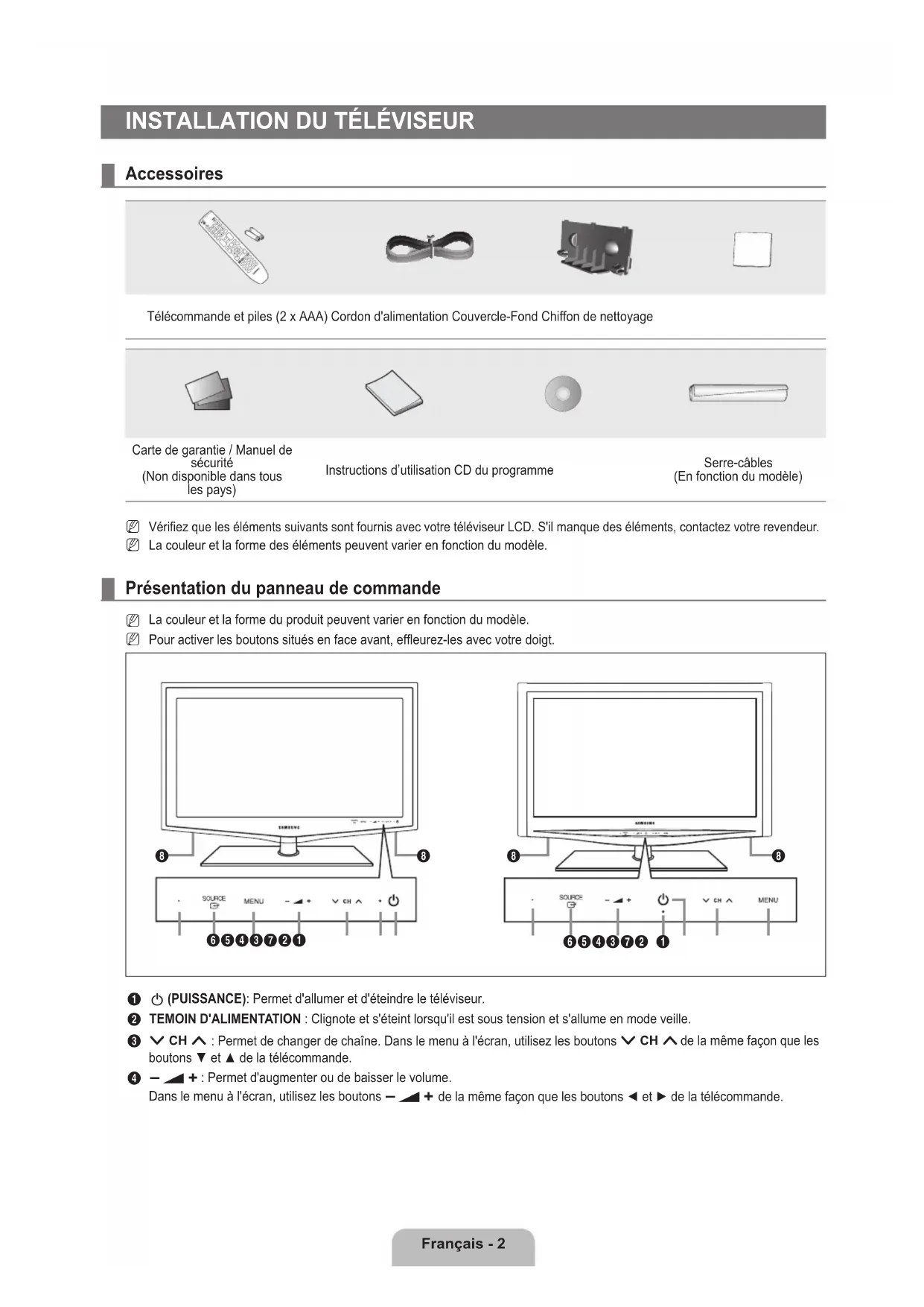 INSTALLATION DU TÉLÉVISEUR Accessoires