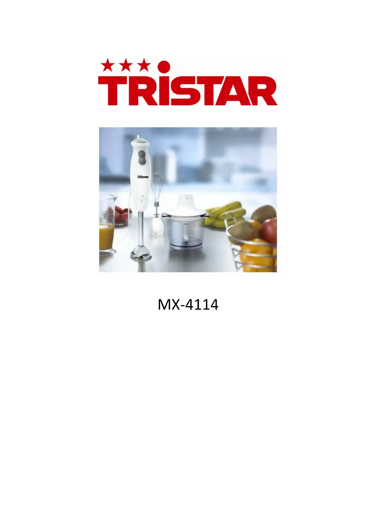 MX4114 - Mixeur plongeant TRISTAR - Notice d'utilisation et mode d'emploi gratuit