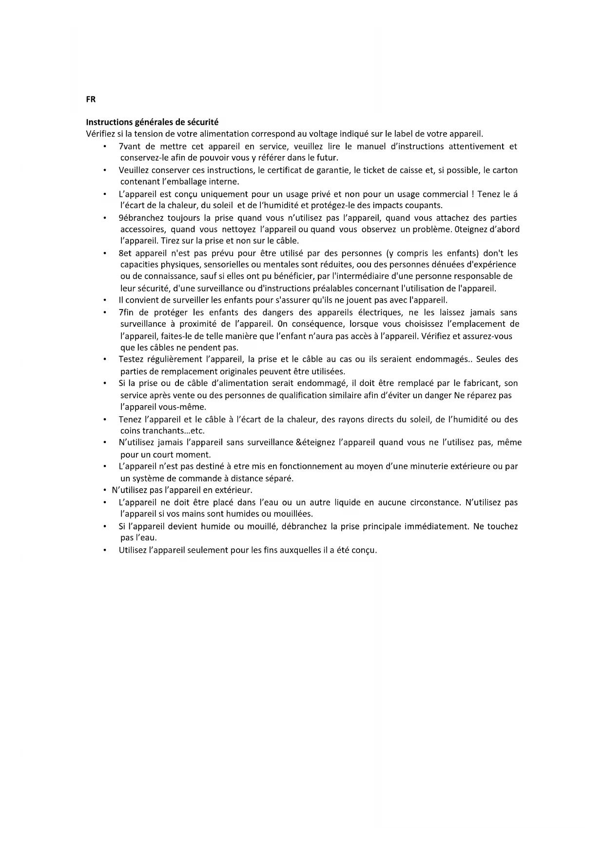 - Testez régulièrement l’appareil, la prise et le câble au cas ou ils seraient endommagés.. Seules des parties de remplacement originales peuvent être utilisées.