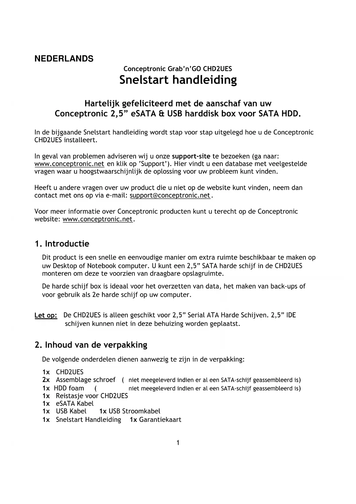 Type 2,5” USB/eSATA HDD Produit CHD2UES Enseigne Conceptronic