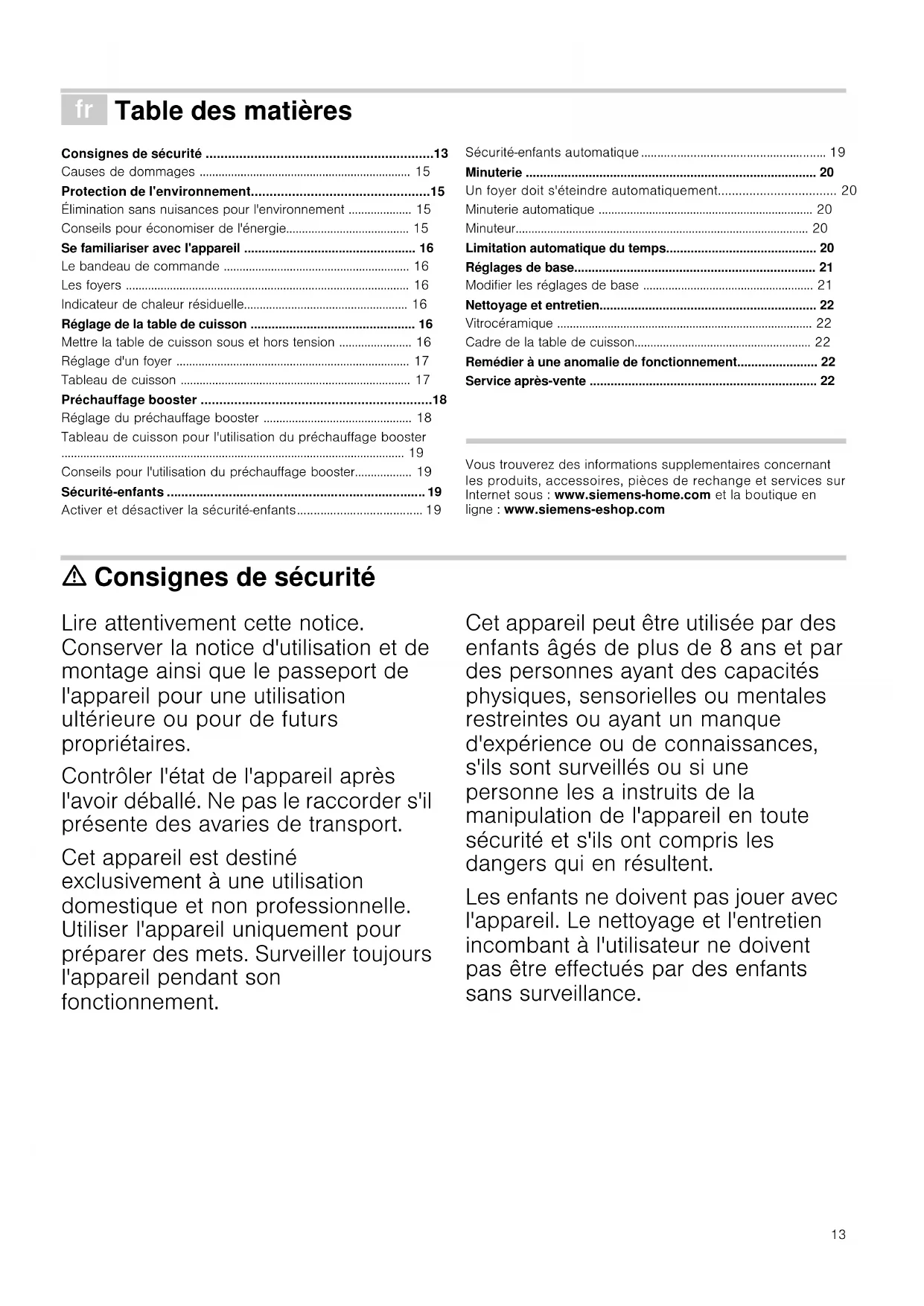 Þ Table des matières [fr]Mode d’emploi Consignes de sécurité 13