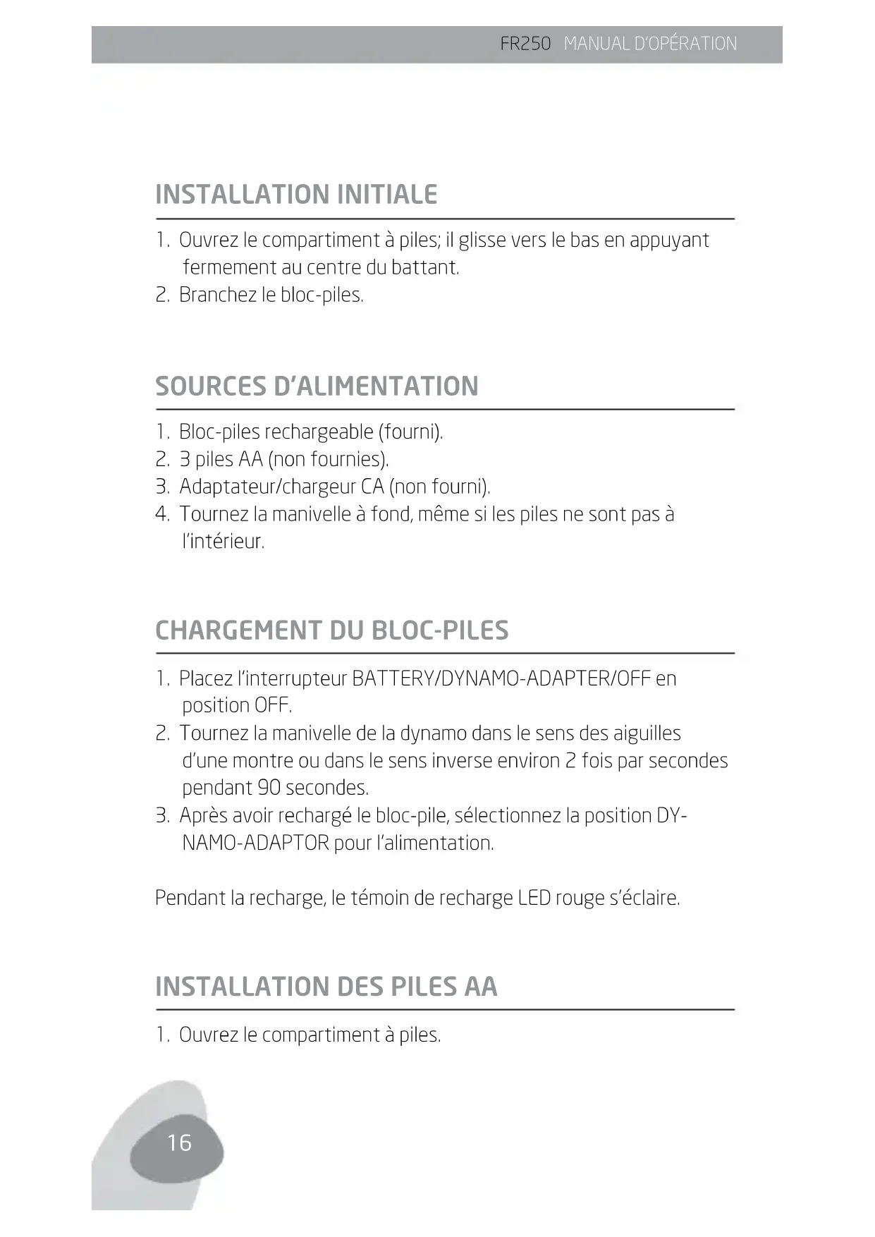FR250 MANUAL D’OPÉRATION