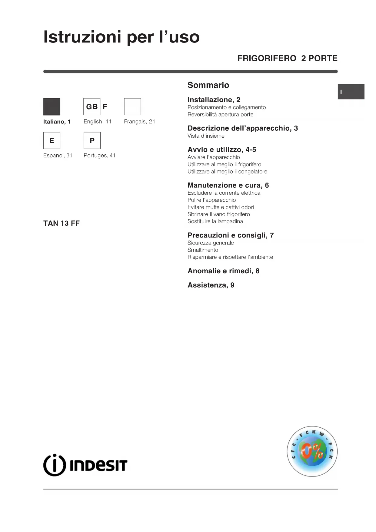 Doble puerta TAN 13 FF - Réfrigérateur INDESIT - Notice d'utilisation et mode d'emploi gratuit