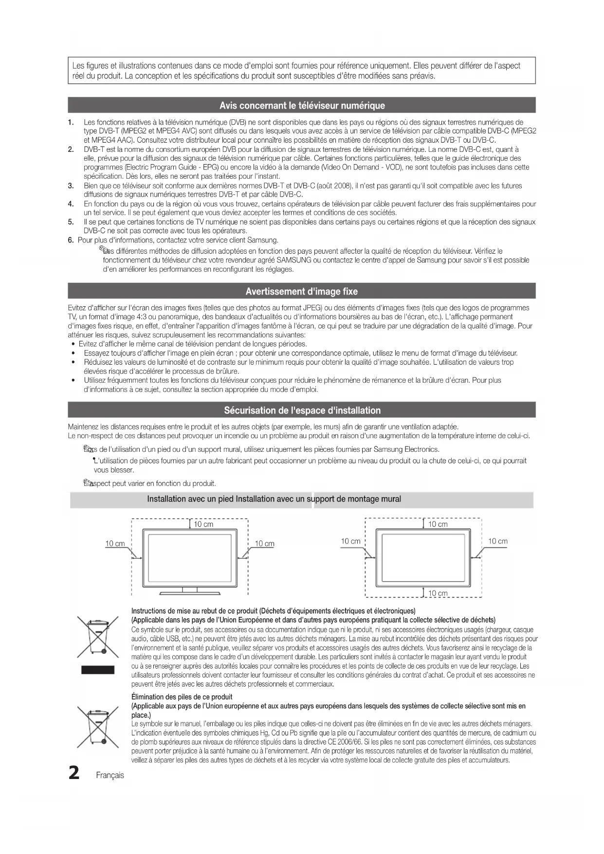 • Evitez d'afficher le même canal de télévision pendant de longues périodes.