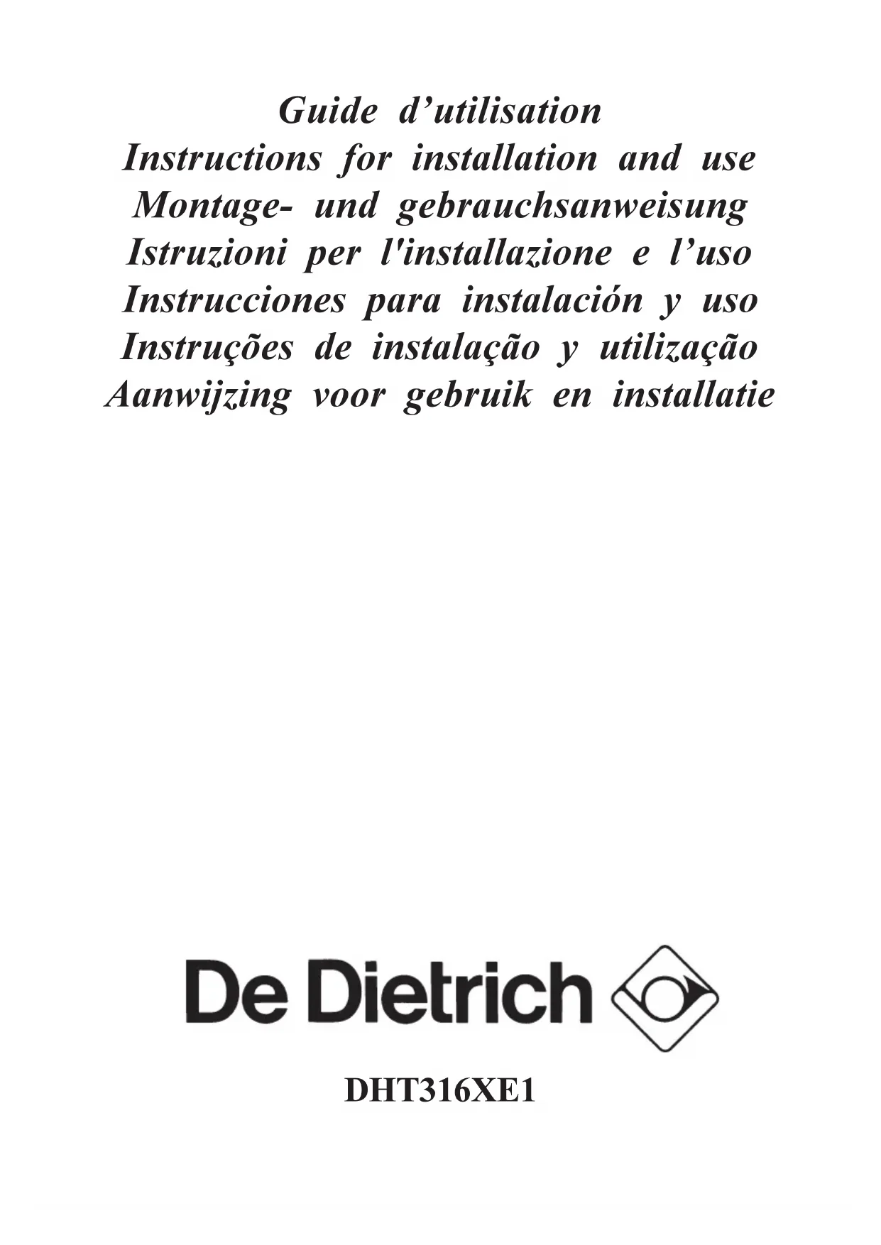 Retrouvez gratuitement la notice de l'appareil DHT316XE1 DE DIETRICH au format PDF.