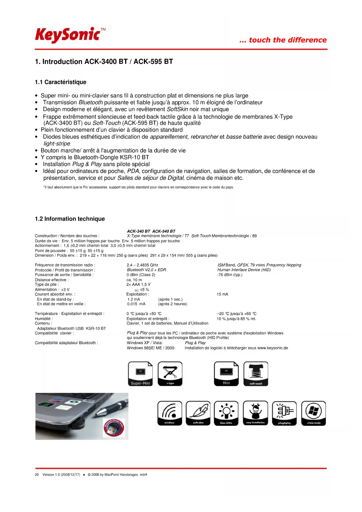 Retrouvez gratuitement la notice de l'appareil ACK3400 BT KeySonic au format PDF.