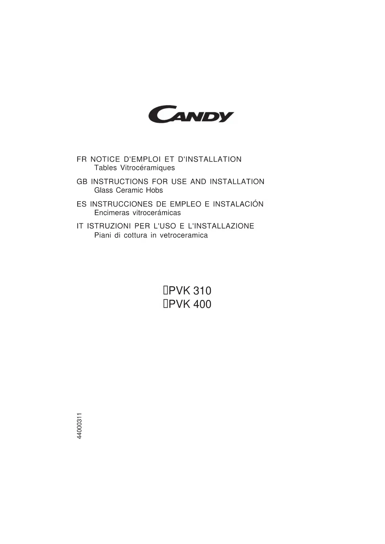 PVK 640 N - Cuisinière CANDY - Notice d'utilisation et mode d'emploi gratuit