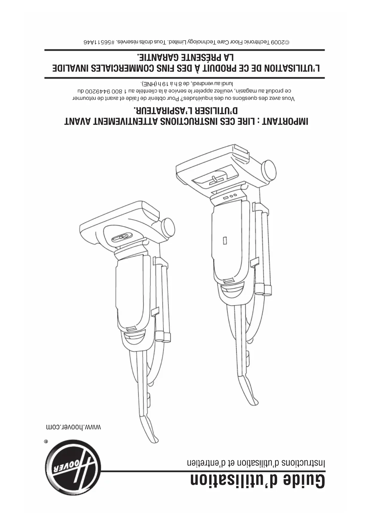 Hoover.com, ou par téléphone, au 1 800 2366375.