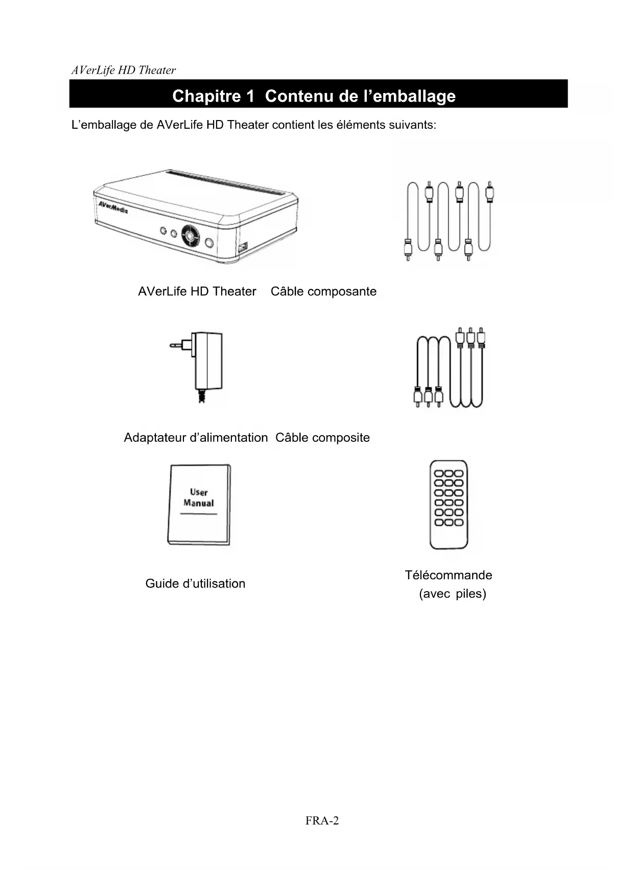 L’emballage de AVerLife HD Theater contient les éléments suivants: