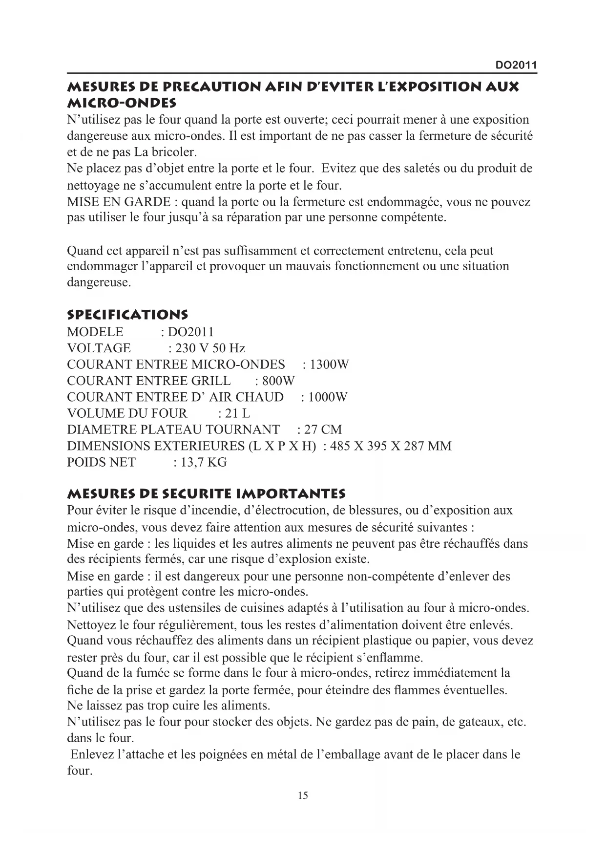 DO2011 - Micro-ondes DOMO - Notice d'utilisation et mode d'emploi gratuit