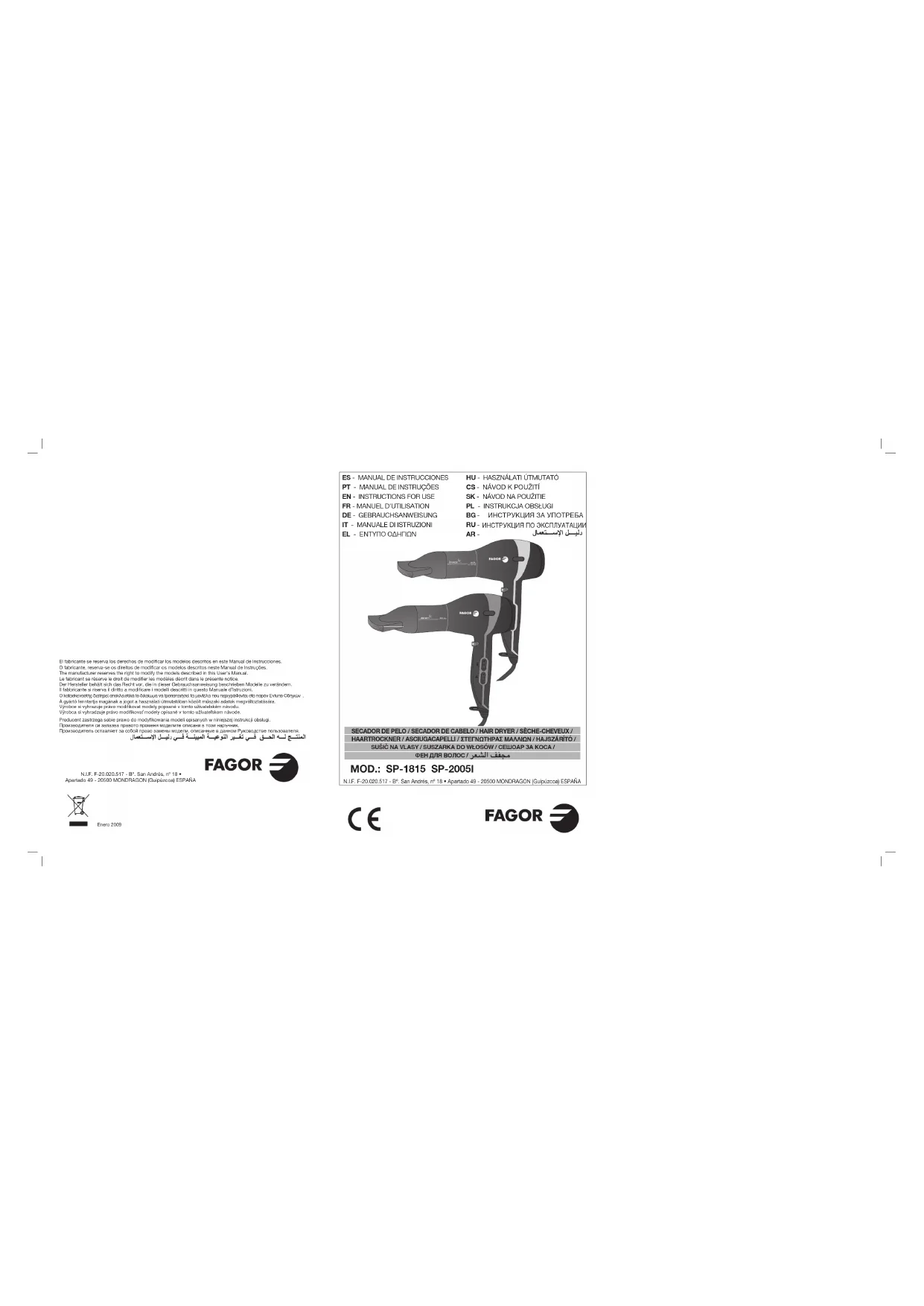 SP1815 - Sèche-cheveux FAGOR - Notice d'utilisation et mode d'emploi gratuit